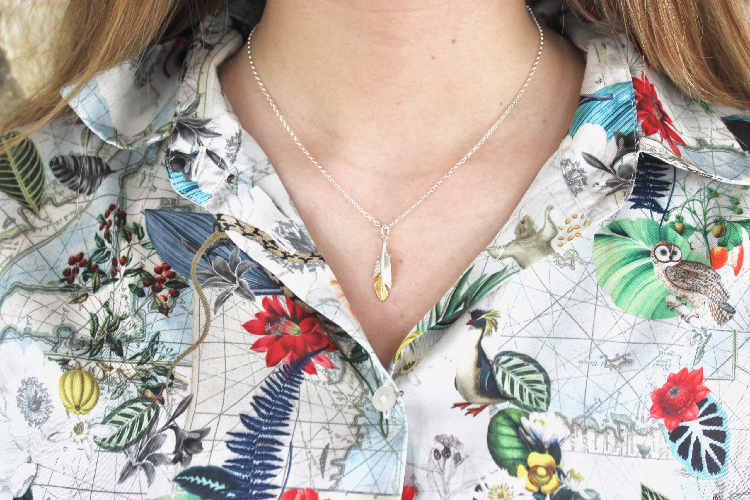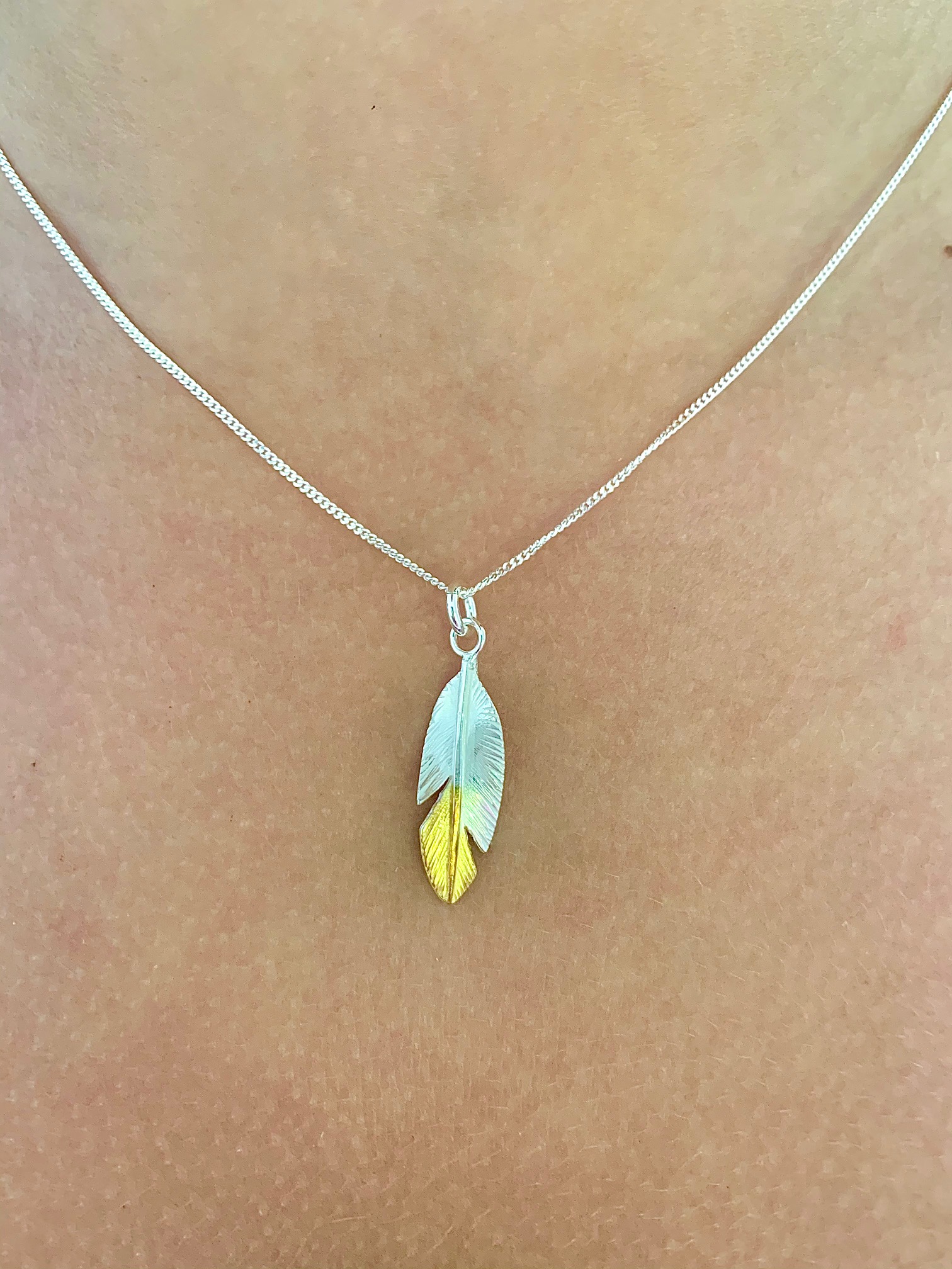 A cute and gorgeous feather with a slight twist and a gold-dipped tip: they have been softly dusted with gold plating to enhance the feather. Whether it’s a gift for a loved one or a treat for yourself, you just can’t go wrong with this beautiful pendant. Intricately detailed, our collection of wing and feather jewellery is perfect for everyday wear or special occasions. Check out our matching studs here.