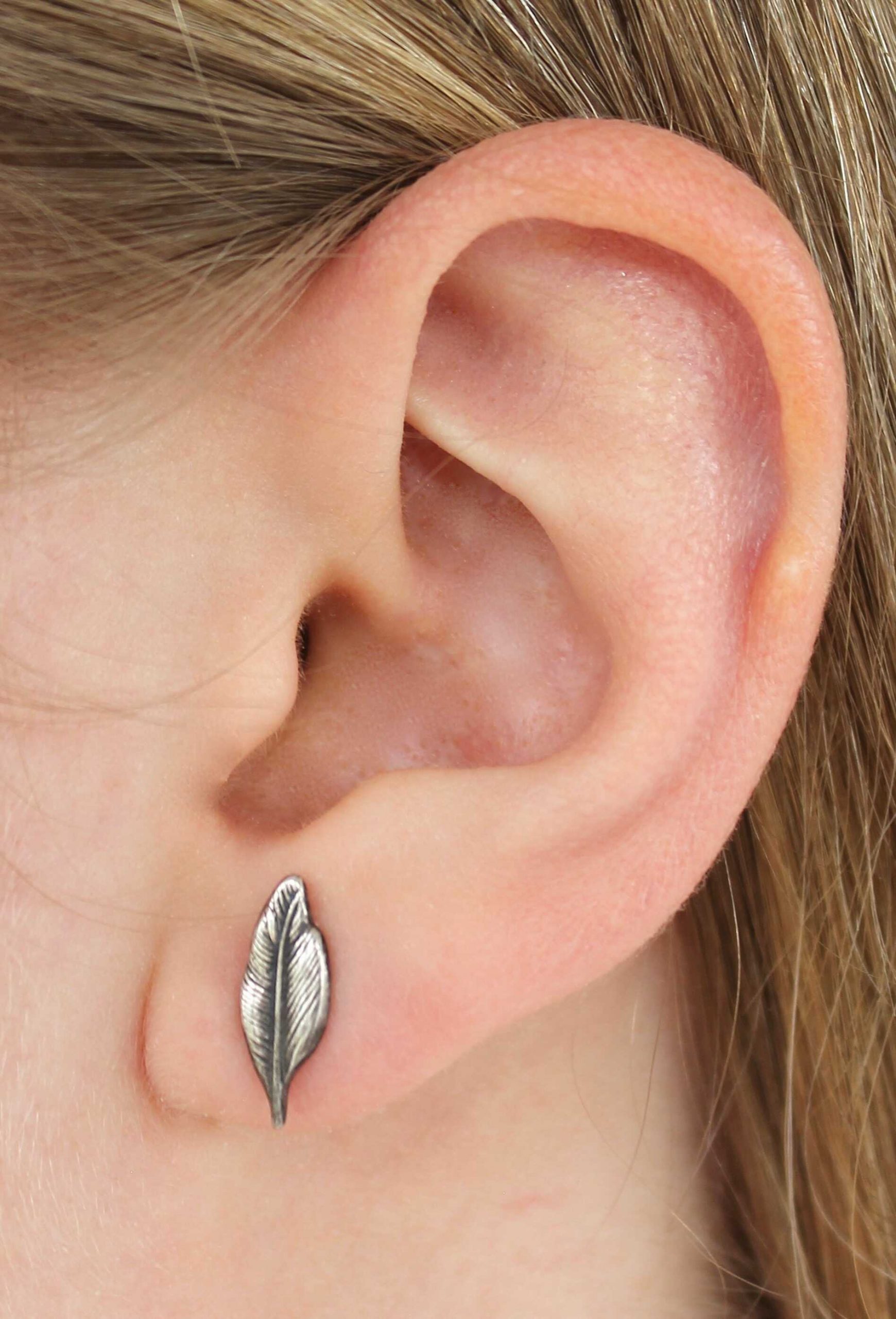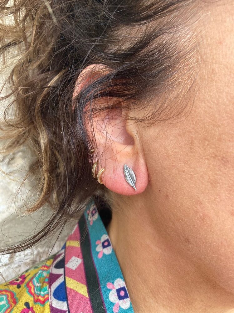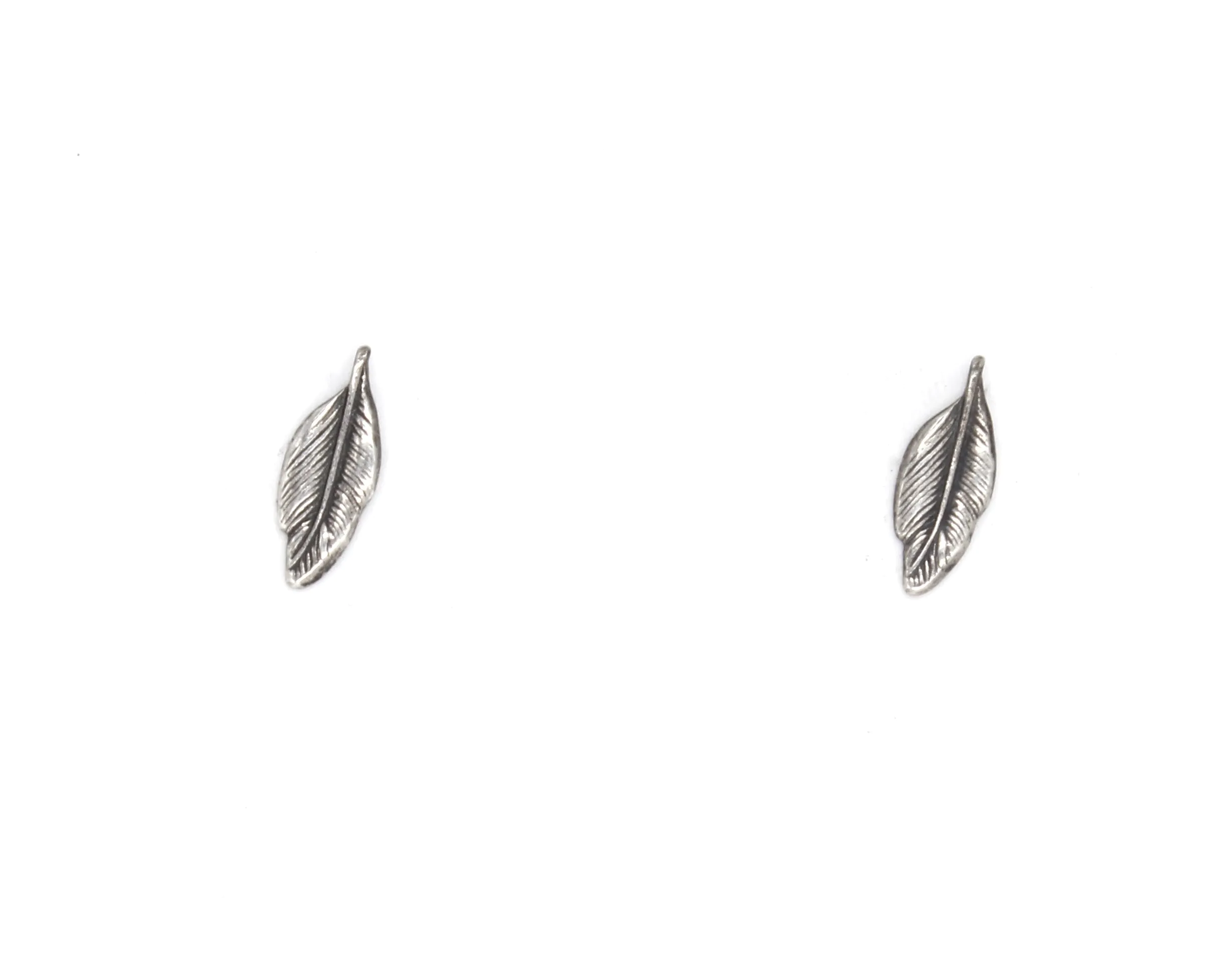 A small, cute pair of sterling silver feather studs, suitable for everyday wear.