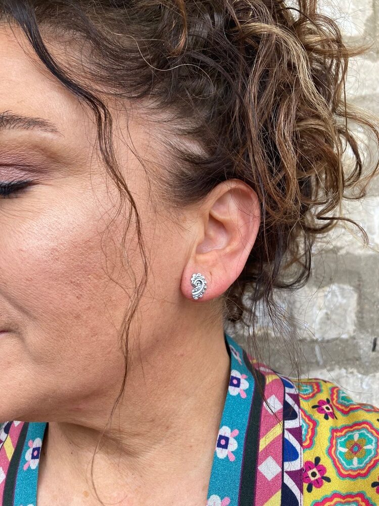 A beautiful pair of fern leaf-inspired studs made from oxidised sterling silver with textured pinnules and a curved shiny midrib. A cute pair, full of character and suitable for everyday wear.
