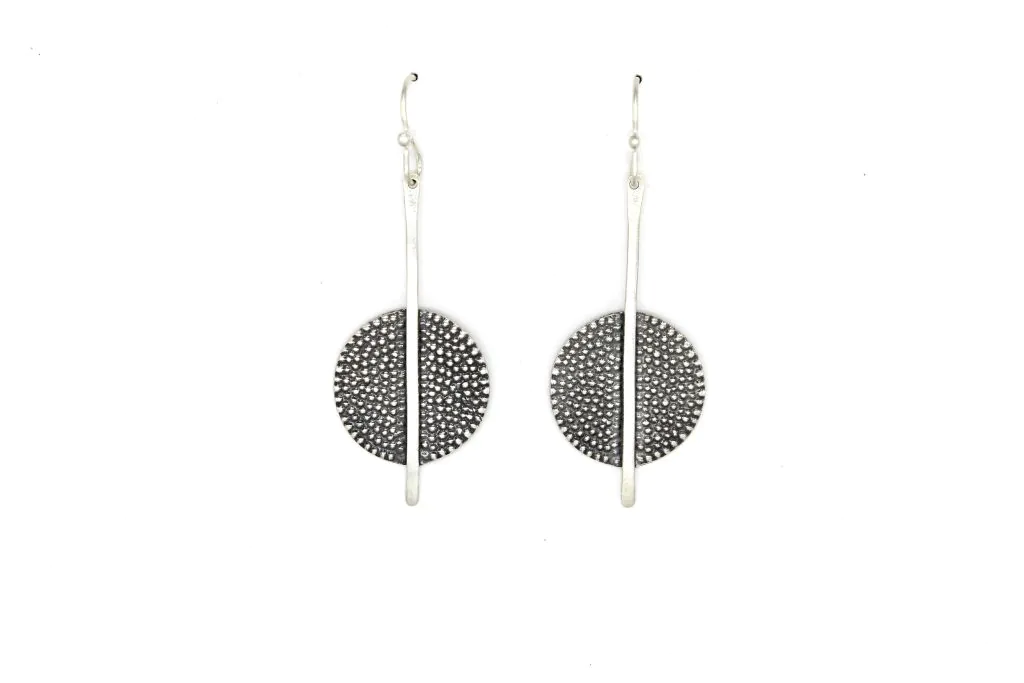 This is sterling silver that has undergone a chemical reaction and has been darkened through the process of oxidation. This is great for accentuating small details and creating dark pieces. The more oxidised a piece the darker the metal will become.
