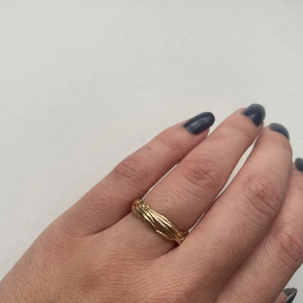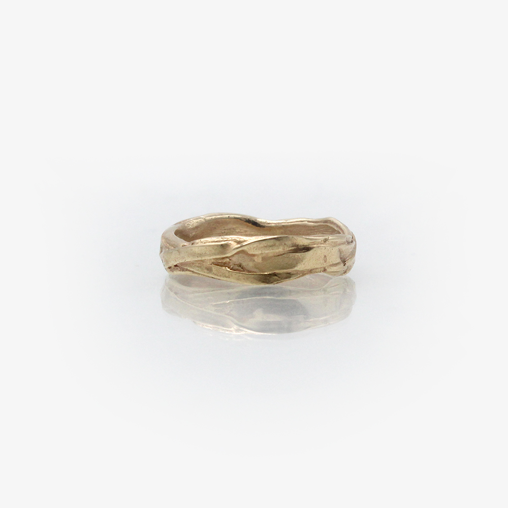 Beautiful soft gold ribbon effect ring, organically created in this British Designers workshop (in her garden) This ring looks fab on a little finger, a thumb or wherever you choose. Would make the perfect wedding band (contact us if you need two)