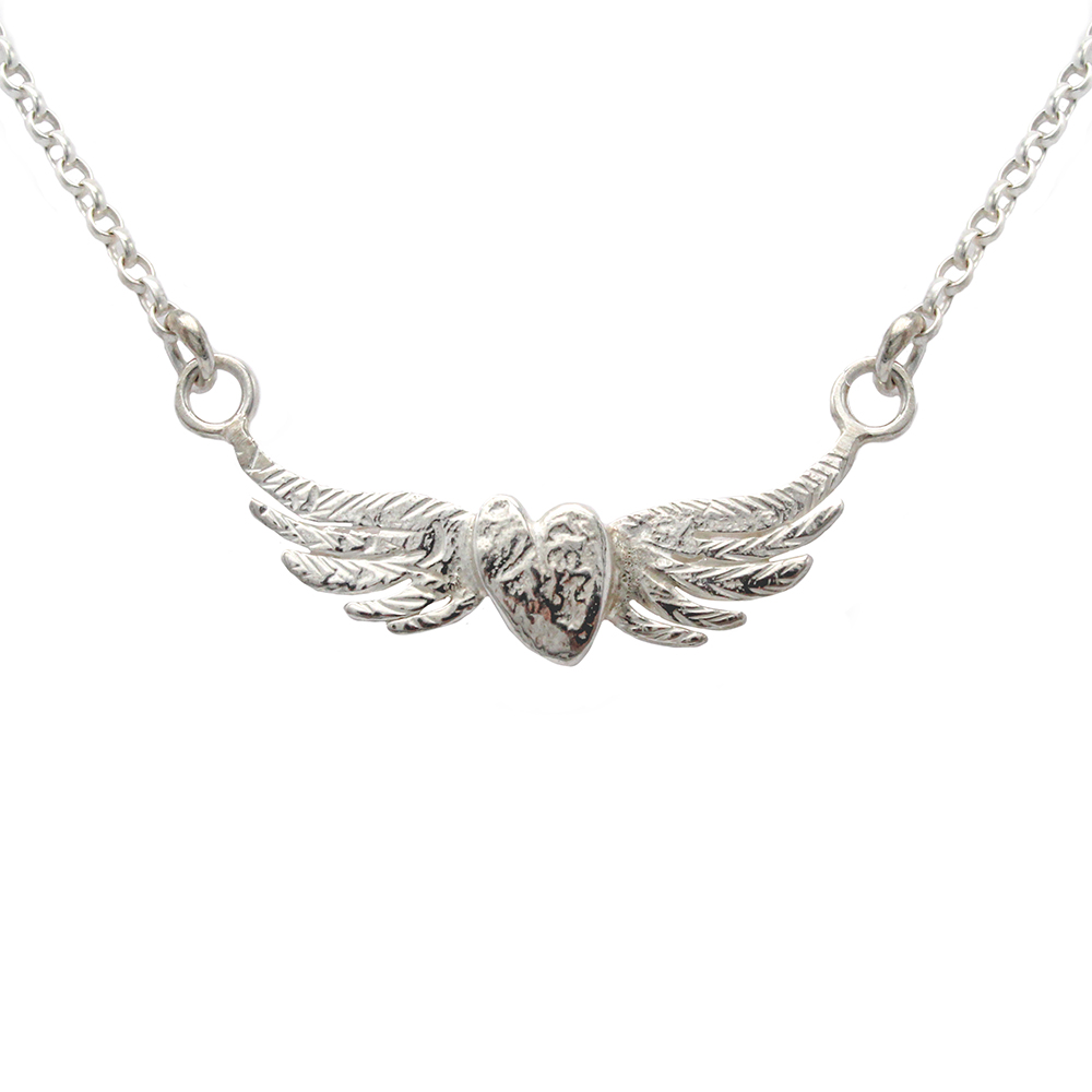 Angel wings sitting either side of a heart, this necklace sits in the hollow of your neck, wear on its own or to create a layer. Why not treat yourself to this beautiful piece or give as a gift for a loved one.