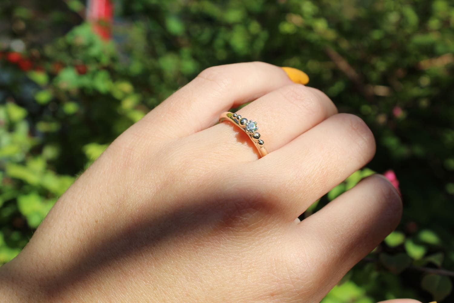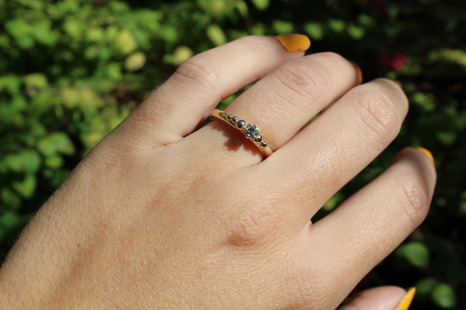 Fi Mehra – Claw Set Diamond and Gold Granulation Ring