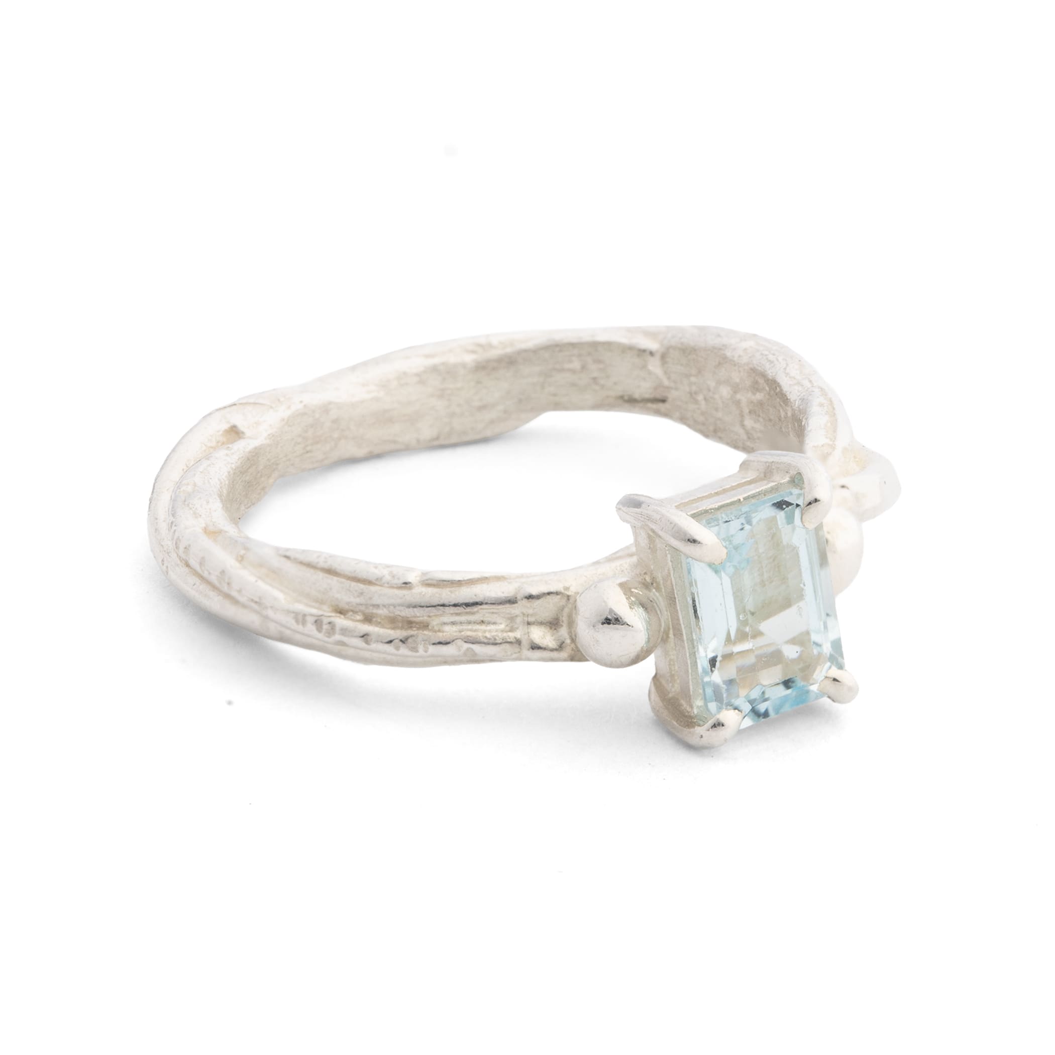 Fi Mehra One Off Aqua Marine Silver Set Ring