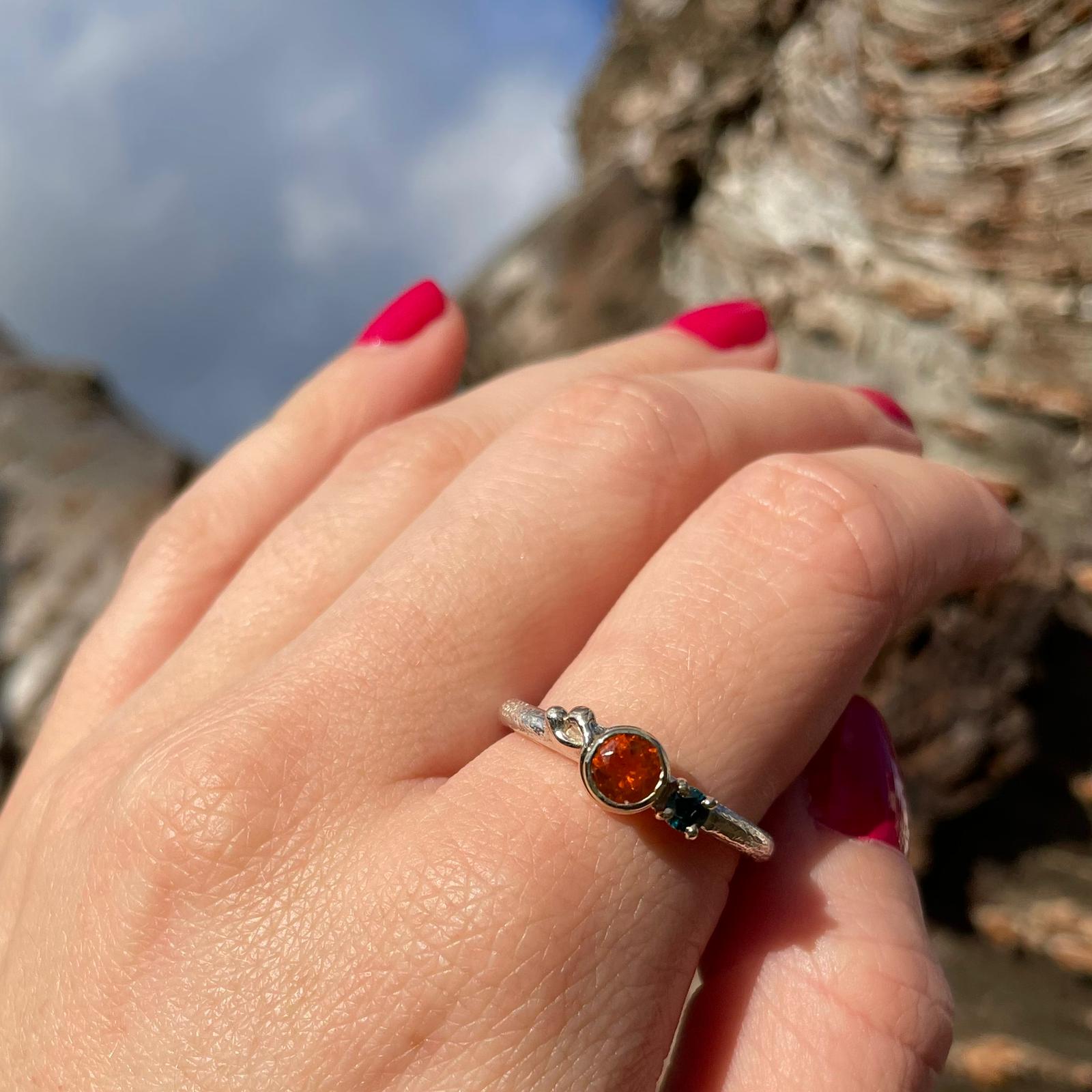 Fi Mehra Fire Opal & Blue Diamond 9ct Gold Set Ring (Silver Band)