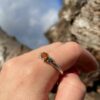 This ring is Amazing, a dazzling Fire Opal encased in 9ct gold with a beautiful Blue Diamond alongside which is in a 9ct Gold claw setting.  On the opposite side  there are  a couple of golden granulations (Balls), all of this is shown off on a plain rounded softly matt band. Fire opals are a firm favourite at A&G and when teamed with a blue diamond it make the most brilliant combination. The British designer who made this ring especially for Armed and Gorgeous has truly created a unique piece of jewellery, this will be loved by you and passed down as a family heirloom for years.