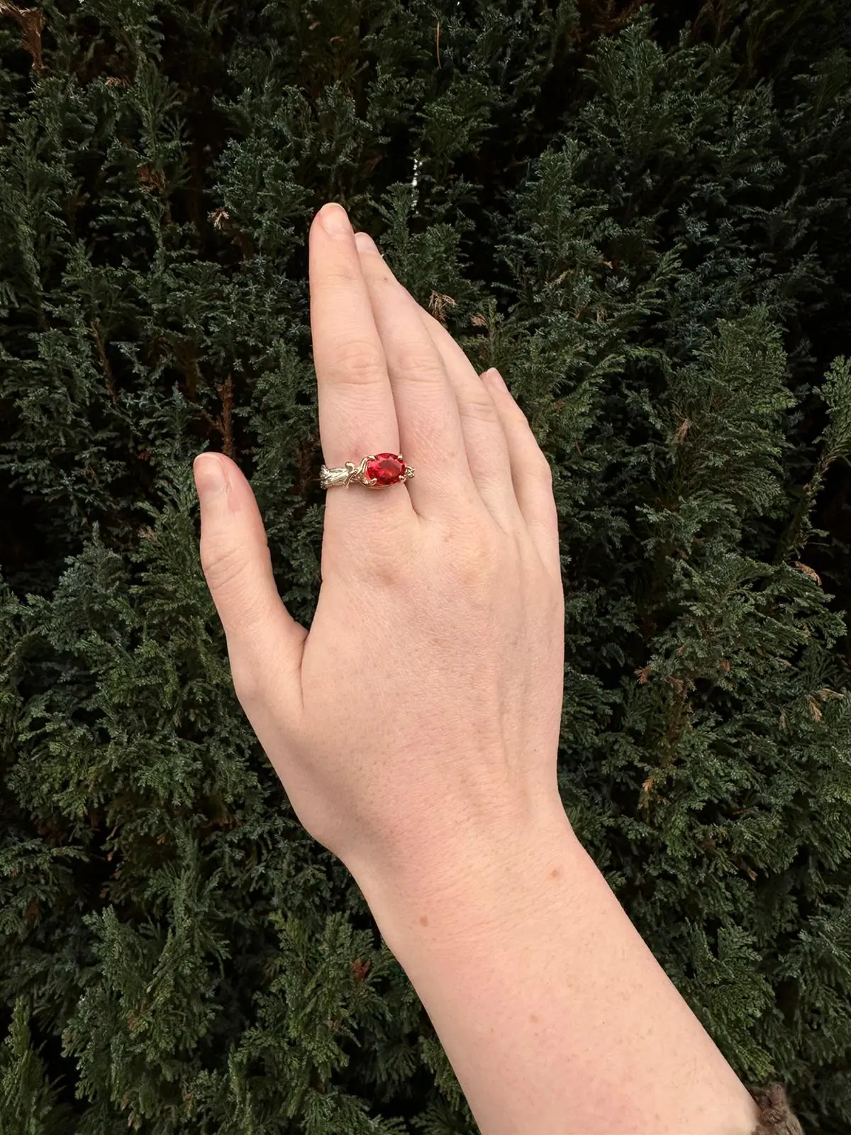 Fi Mehra Fire Opal & Diamond 9ct Gold Silver Ring