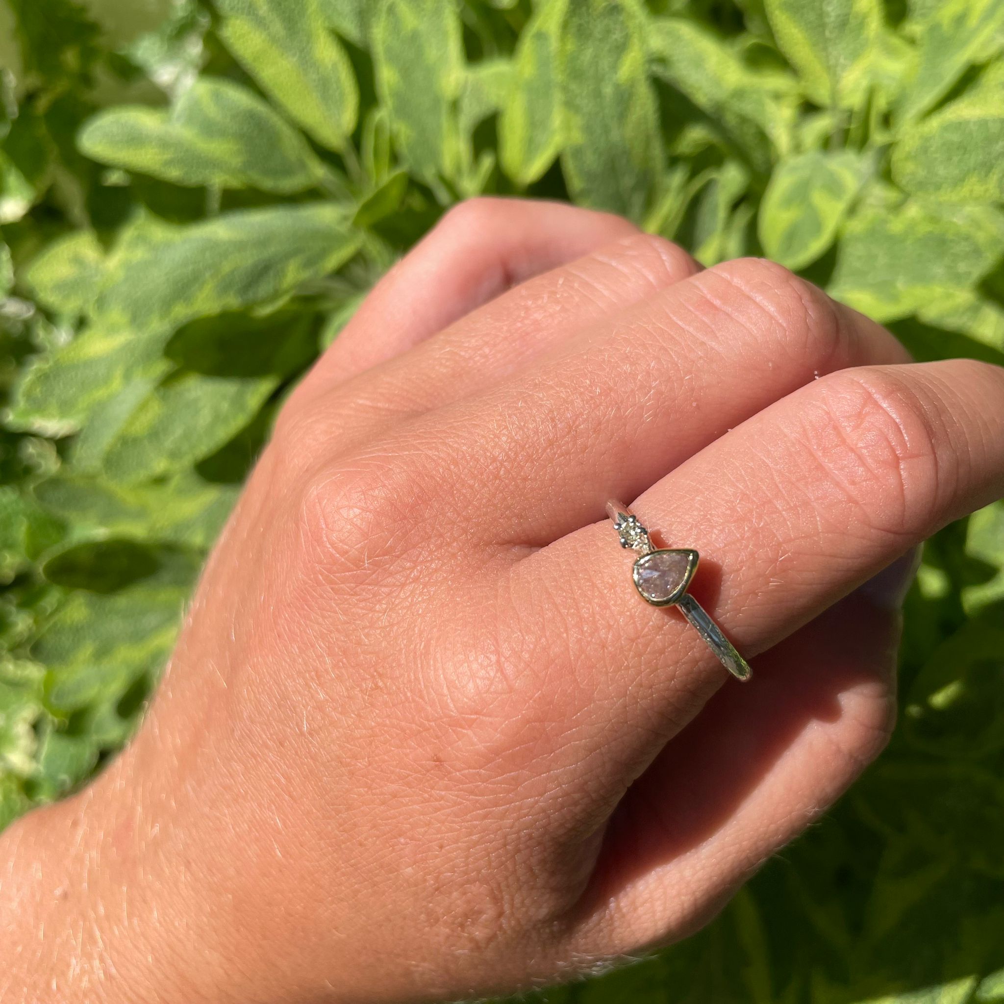 Fi Mehra – Teardrop Salt And Pepper Diamond Ring With 9ct Gold Setting