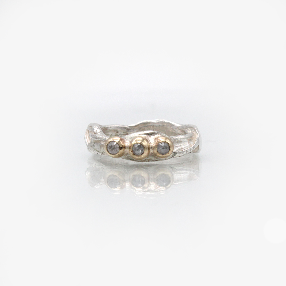 Fi Mehra – Triple Grey Diamond Ring (9ct Gold & Silver)