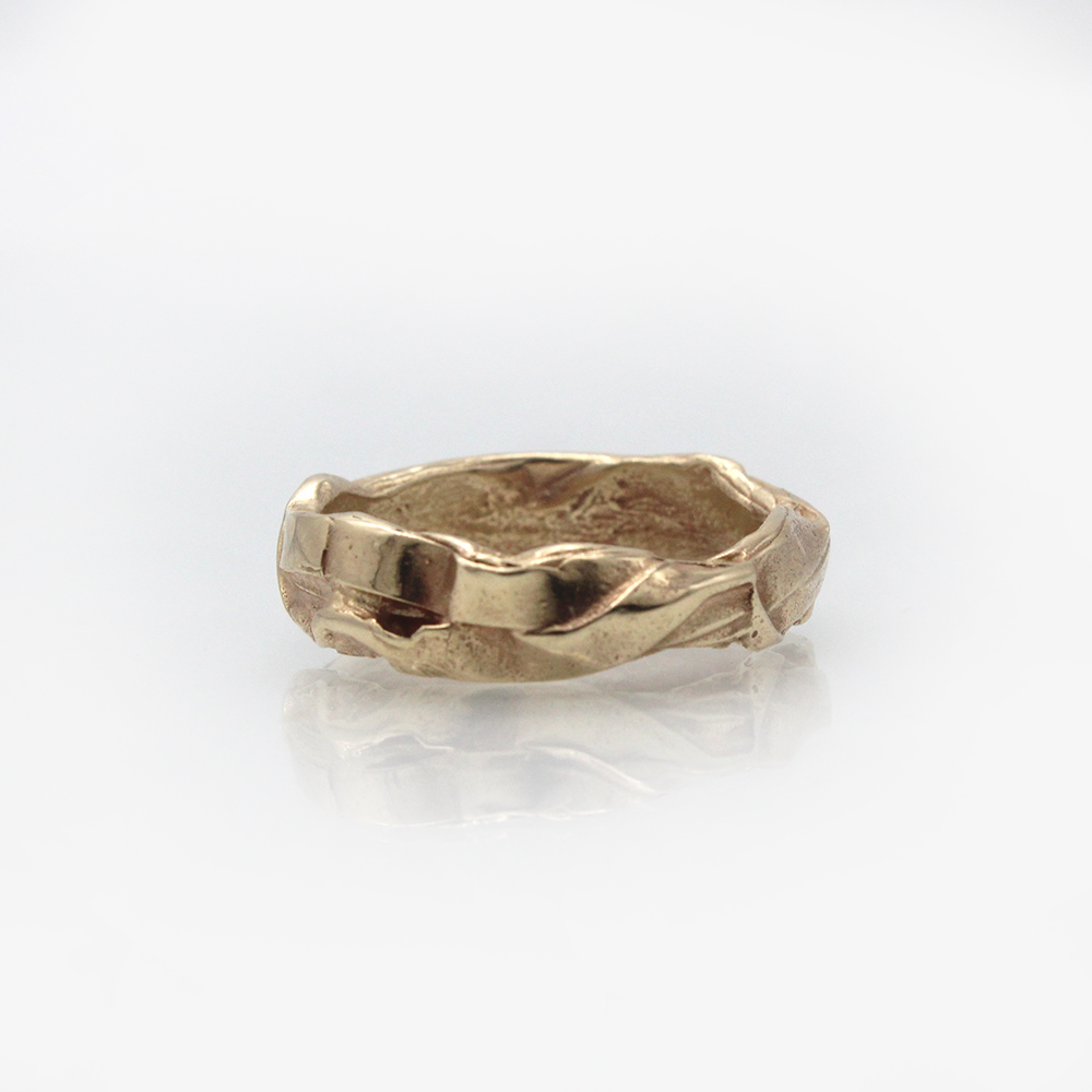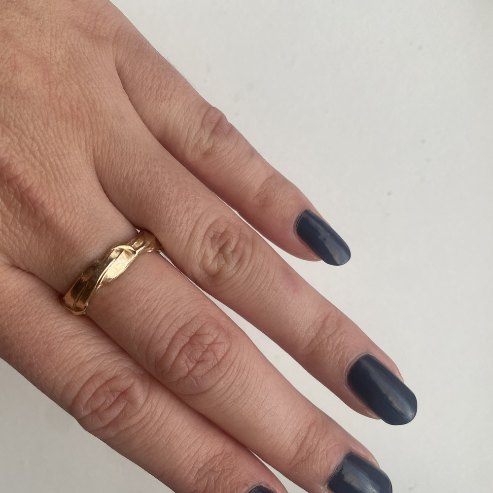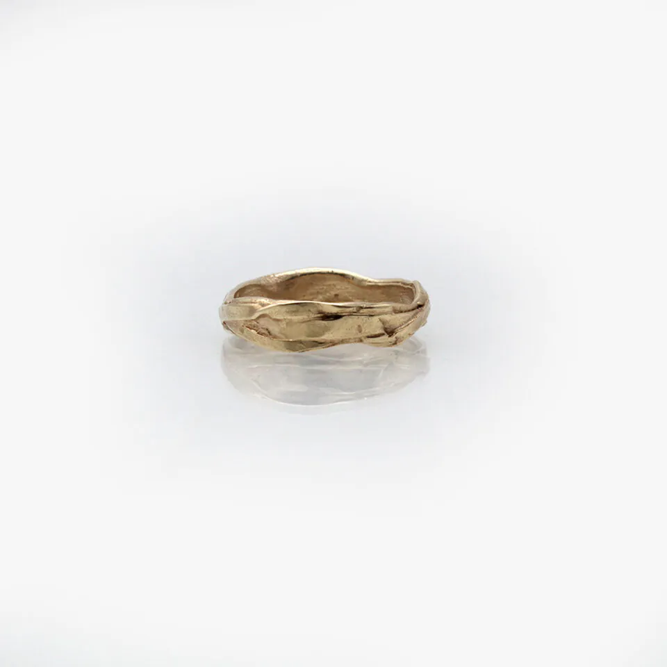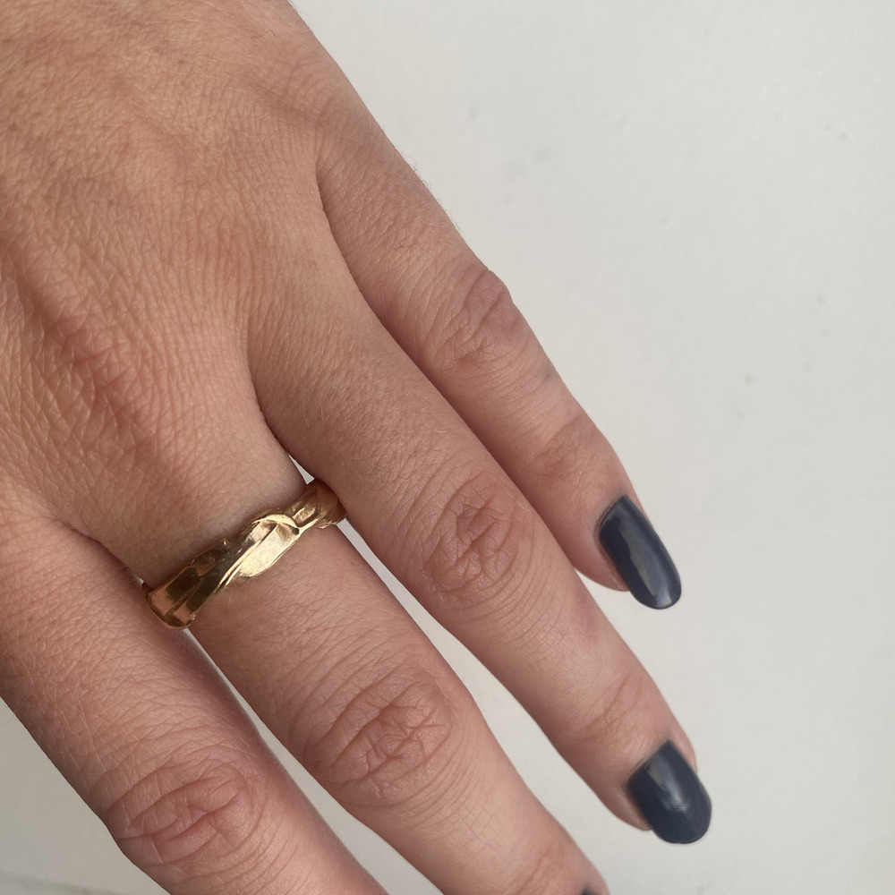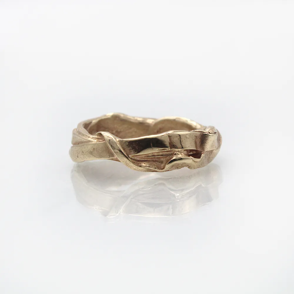 Beautiful soft gold ribbon effect ring, organically created in this British Designers workshop (in her garden) This ring looks fab on a little finger, a thumb or wherever you choose. Would make the perfect wedding band (contact us if you need two)