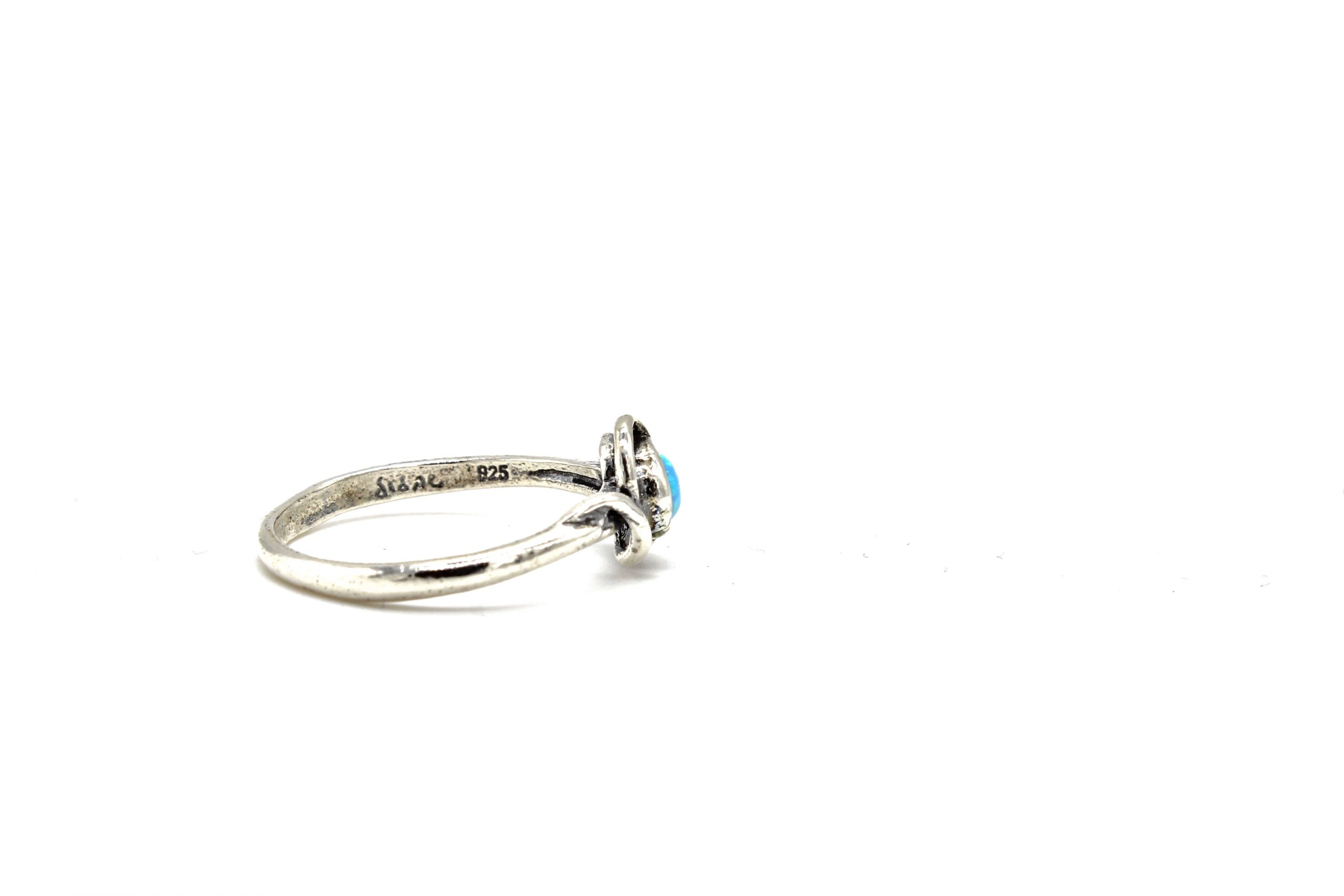 Beautiful handmade silver ring with a set opalite stone in the centre of a stunningly simple flower.