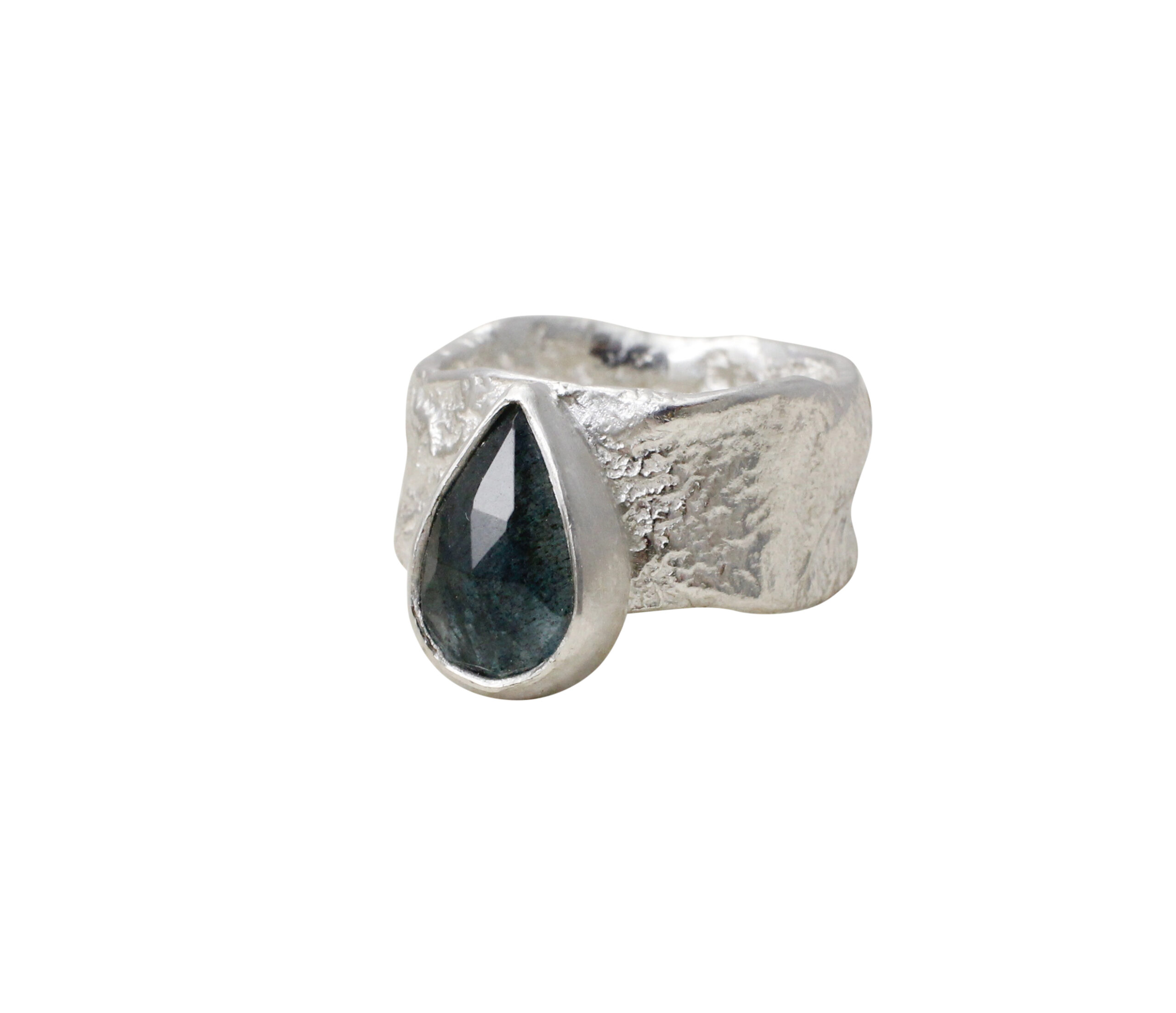 • Brief Description: This fragment ring is crafted from sterling silver with a teardrop moss aquamarine to add some sparke.