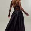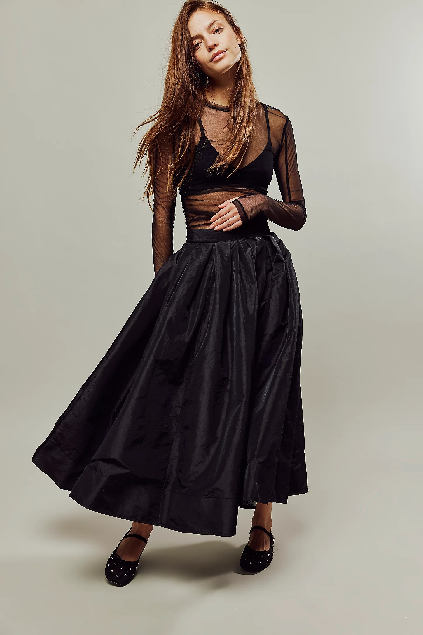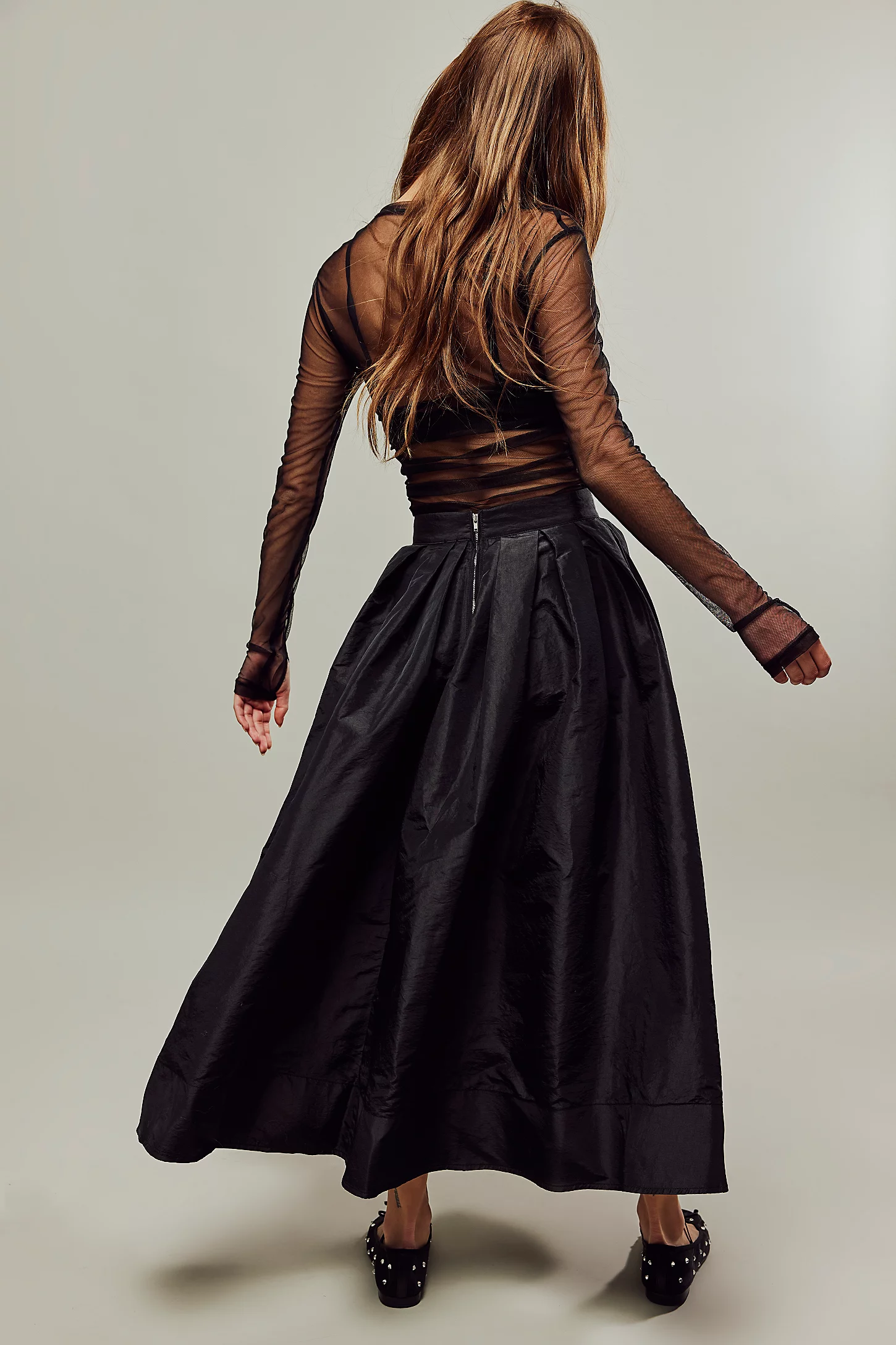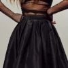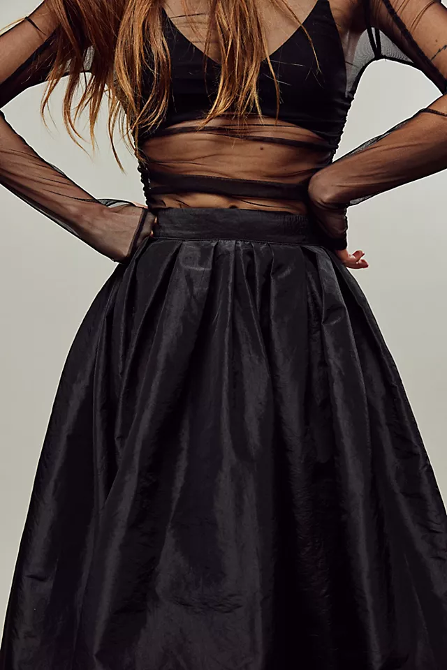 Features: Sheen finish, pleating at top, finished hem, invisible zip closure, poplin fabrication