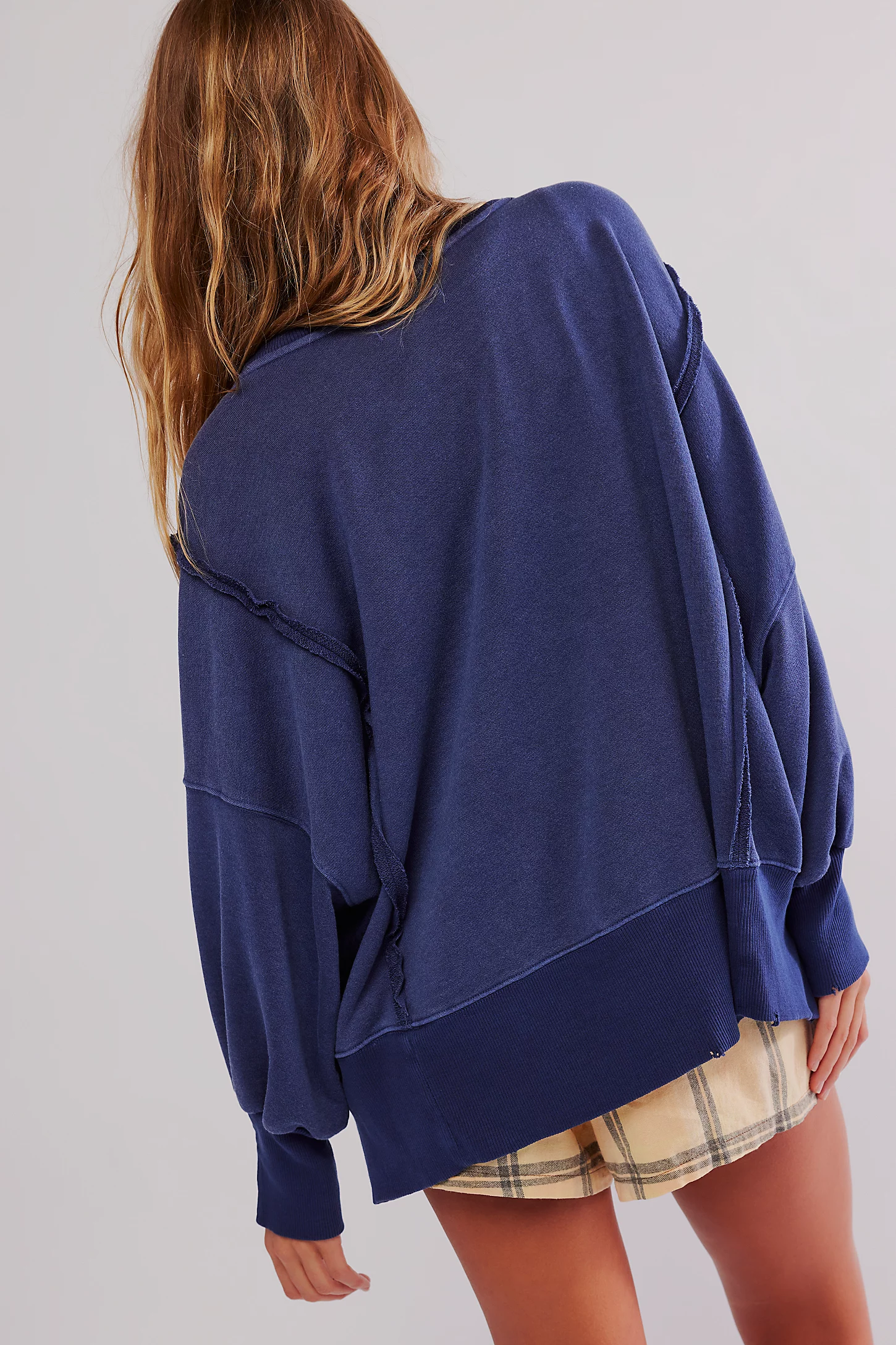 Features: Scoop neckline, dropped shoulders, side slits at the bottom, ribbed hems, defined seaming