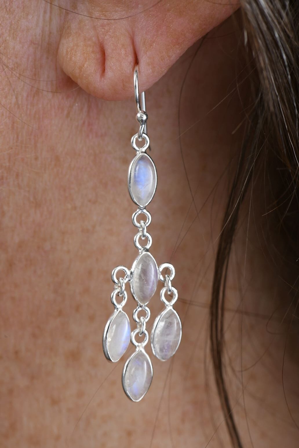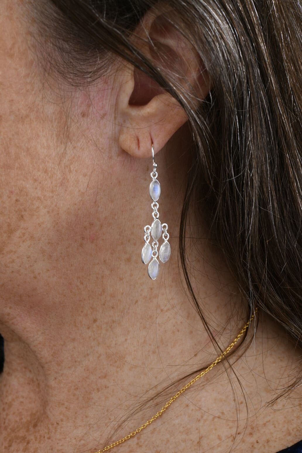 Elevate your elegance with our stunning set of five drop Moonstone earrings, reminiscent of a chandelier’s beauty. These exquisite pieces are beautifully crafted from ethical stones and recycled silver, making them a sustainable and ethically conscious choice for the fashion forward individual. Perfect for adding a touch of sophistication and grace to any ensemble.