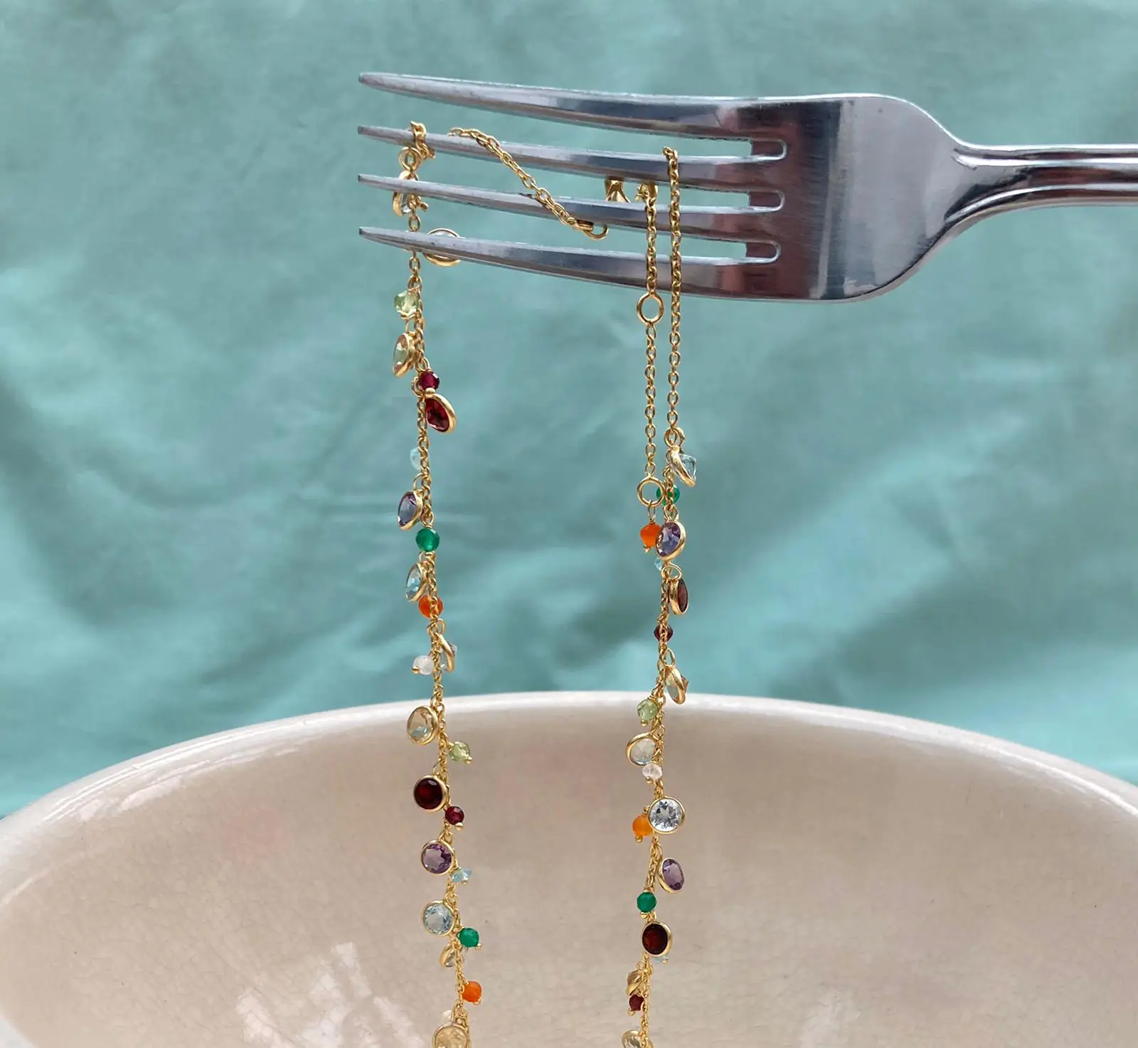 This piece has been lovingly handmade in the UK by one of our top designers! Please note we only have one in stock. Made from authentic gemstones and gold-plated silver. click here for the matching necklace !