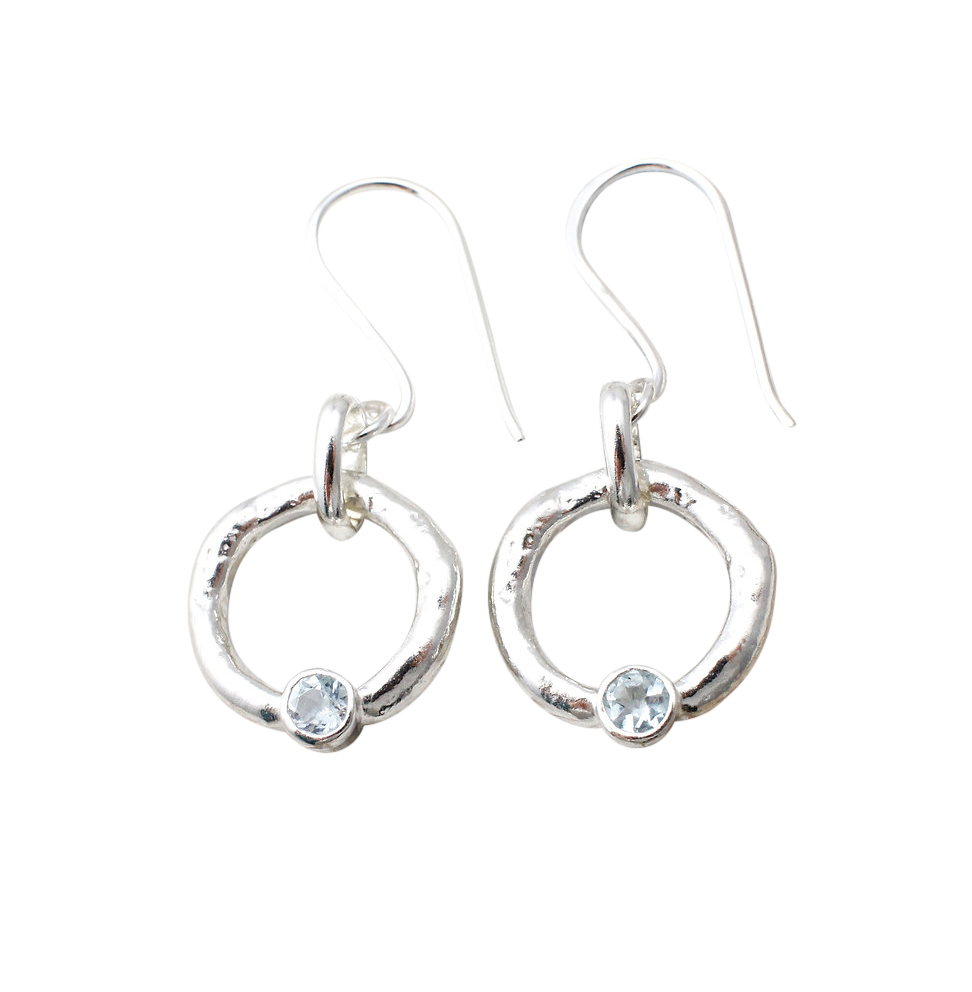 Lovely handmade sterling silver halo drops with authentic gemstones. This pair features 2 aquamarine gemstones set in sterling silver. These have been handmade in Cornwall and the texture of the halos reflects the Cornish coastline!