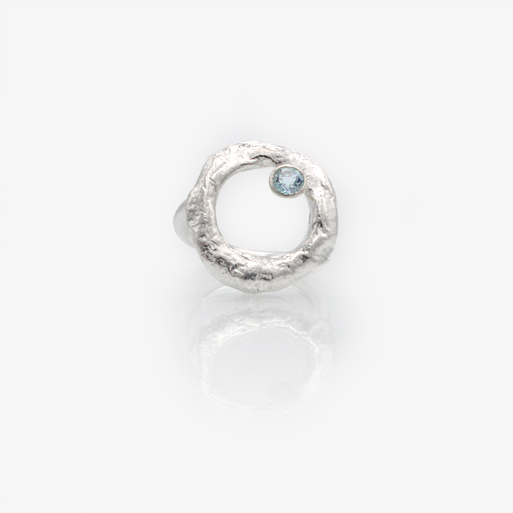 This British Designer works from a Studio in Cornwall, she is hugely inspired by the rugged textures found near her home in North Cornwall, from coastal rock formations to weather-beaten old benches found along coastal paths. She has a deep interest in the aray of processes that can be employed to create jewellery. She loves to explore these different techniques finding the precious metal’s inner characteristics. Working with Silver/Gold and Semi-Precious Stones creating beautiful organic pieces.