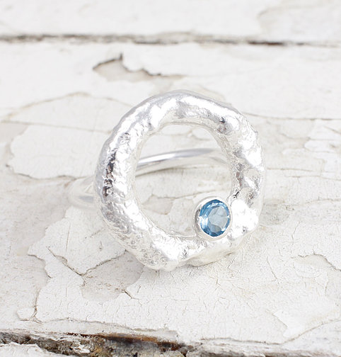 A stunning collection to our handmade jewellery selection, this piece is made by one of our most popular designers. The ring is made from solid sterling silver with a fantastic organic texture, topped off with a dazzling Swizz Blue Topaz!
