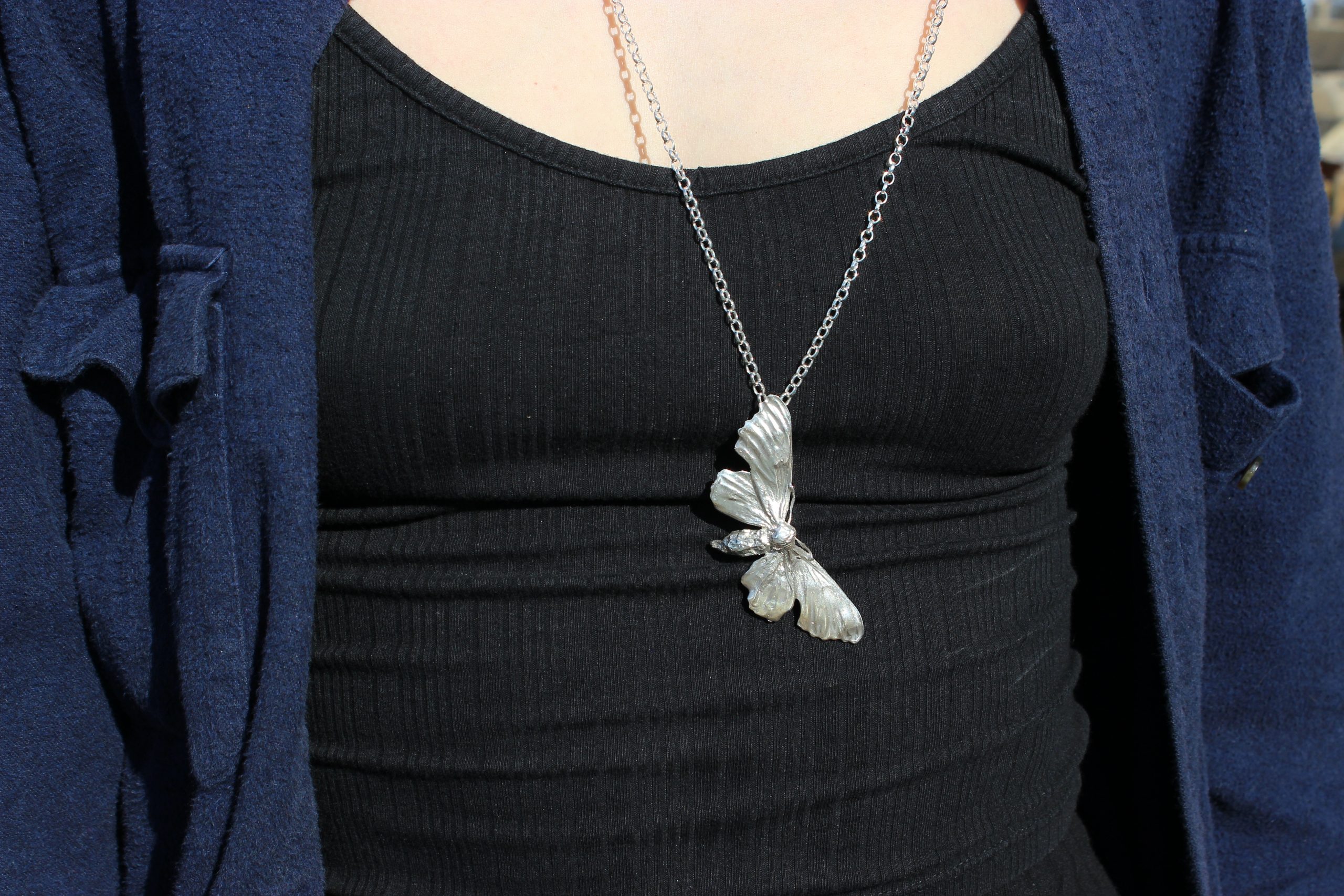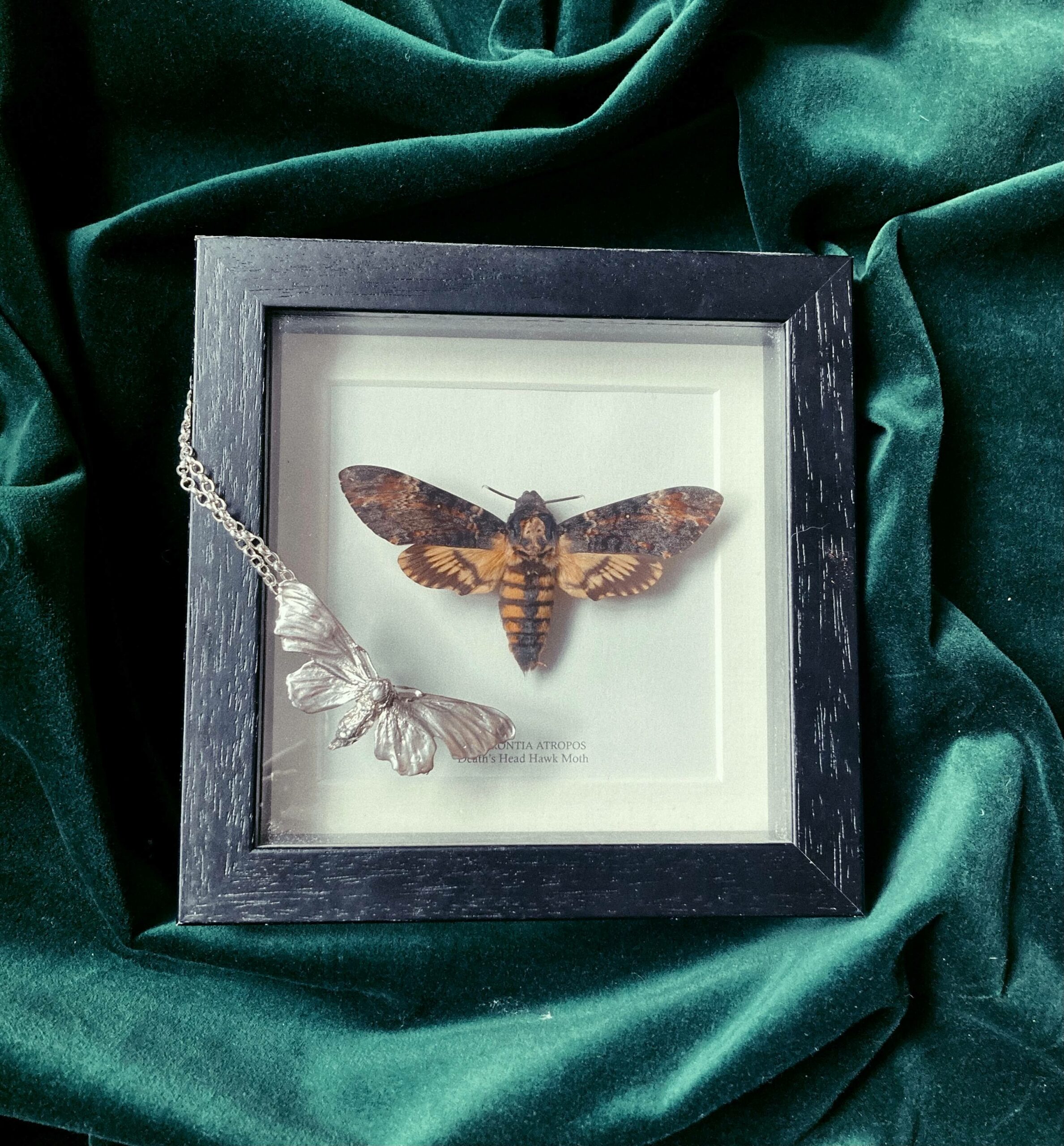 Hanging Hawk Moth Necklace (Silver or Silver Oxidised Finish)