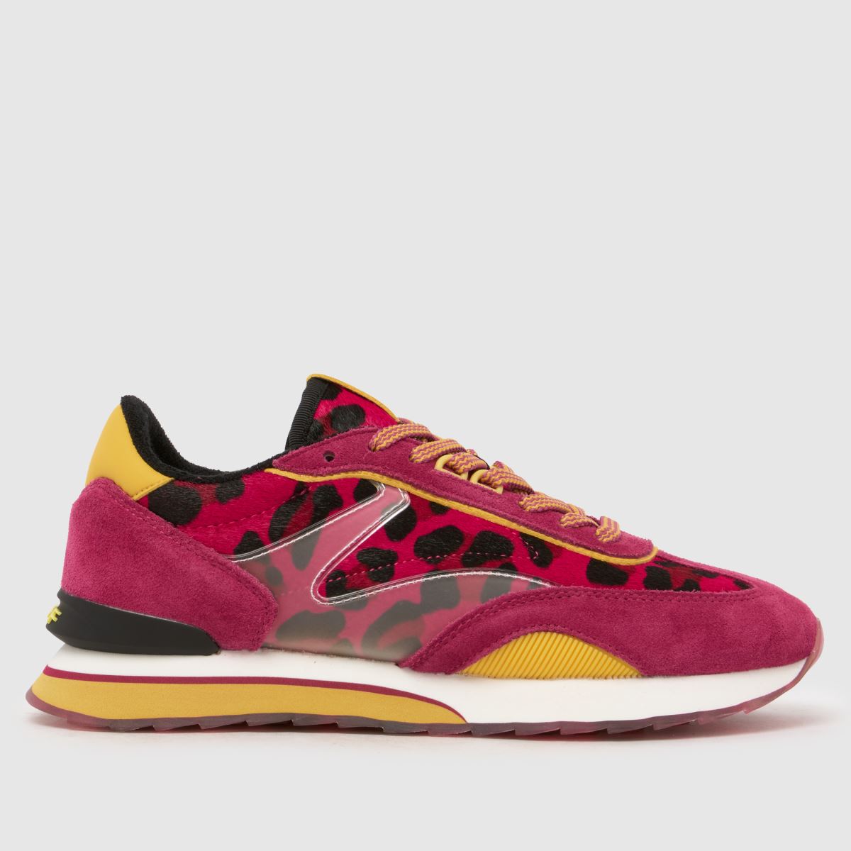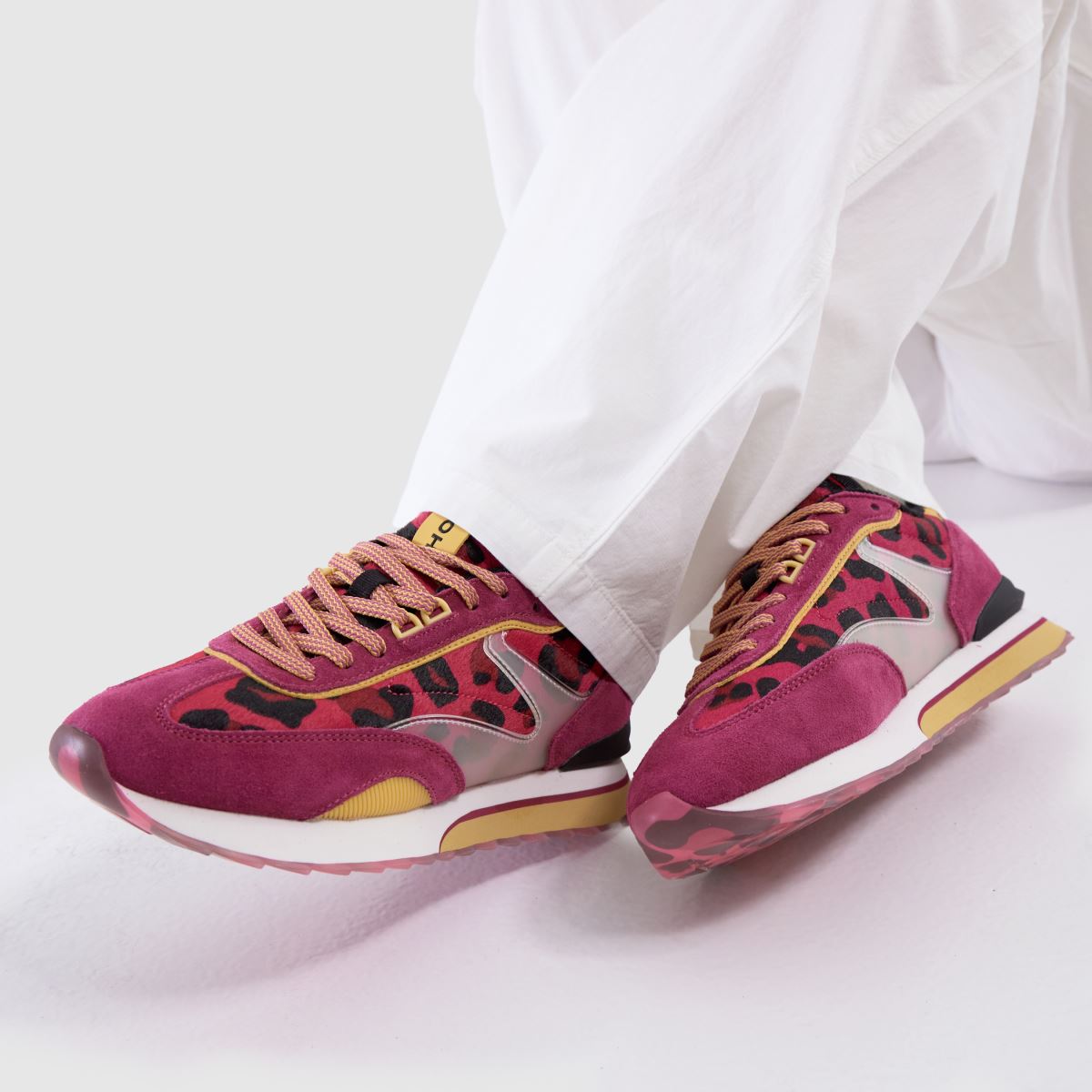 The retro silhouette delivers head turning style with pink suede uppers and hair textured leopard print details, while yellow accents enhance the colourful vibe. A perfect choice for bold expression!