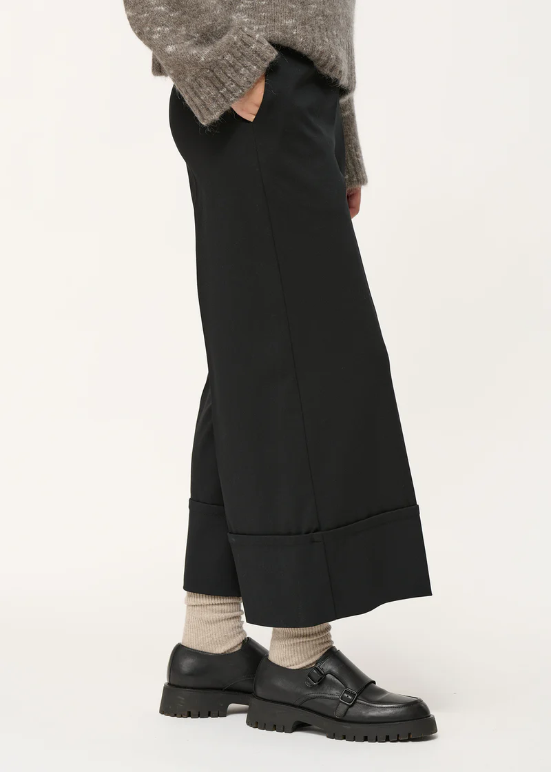 – Wide-leg trousers with large cuffs