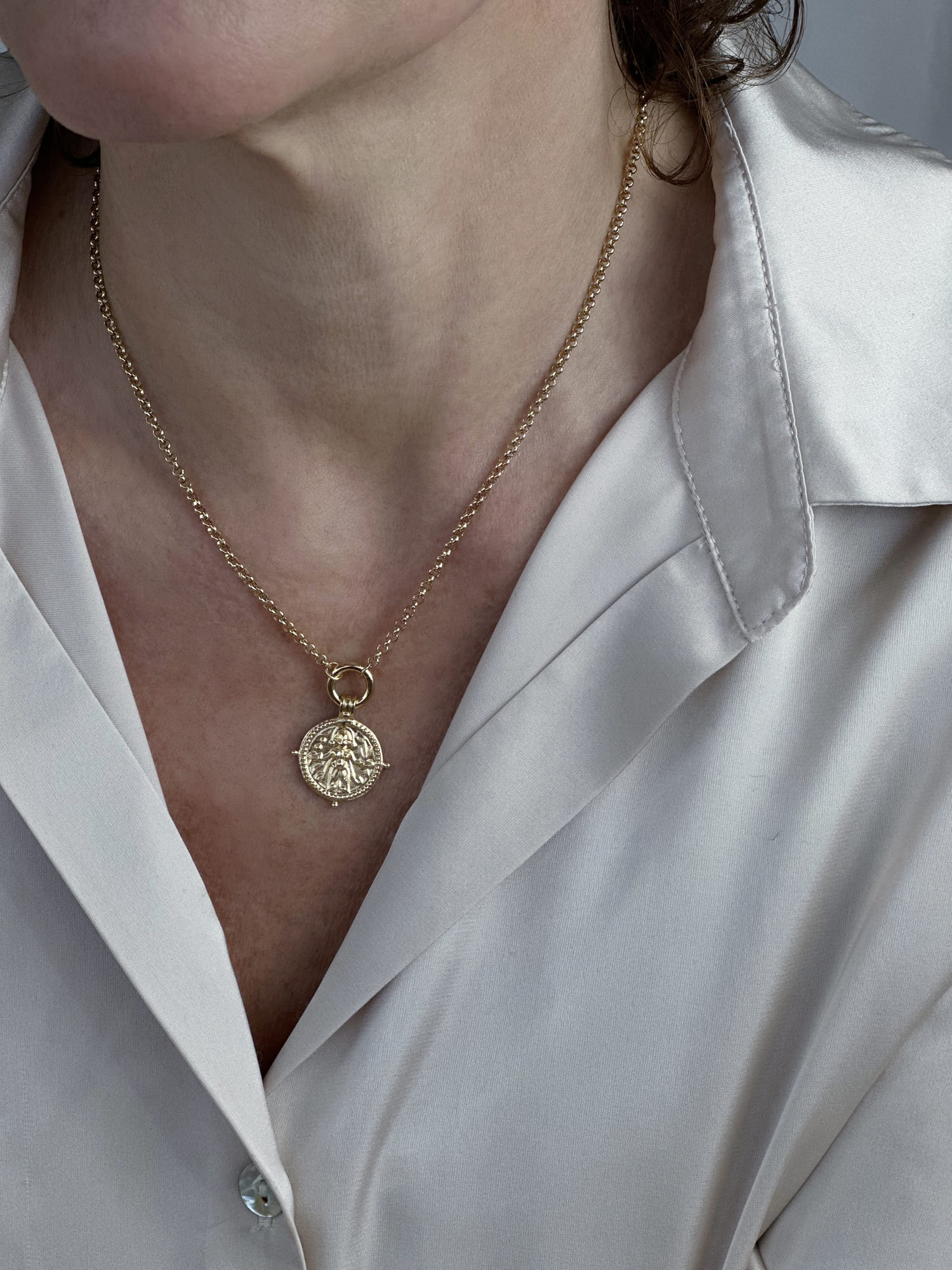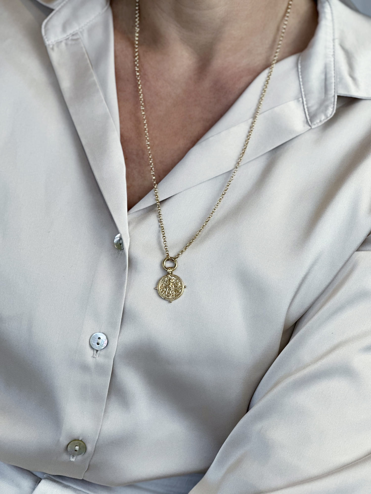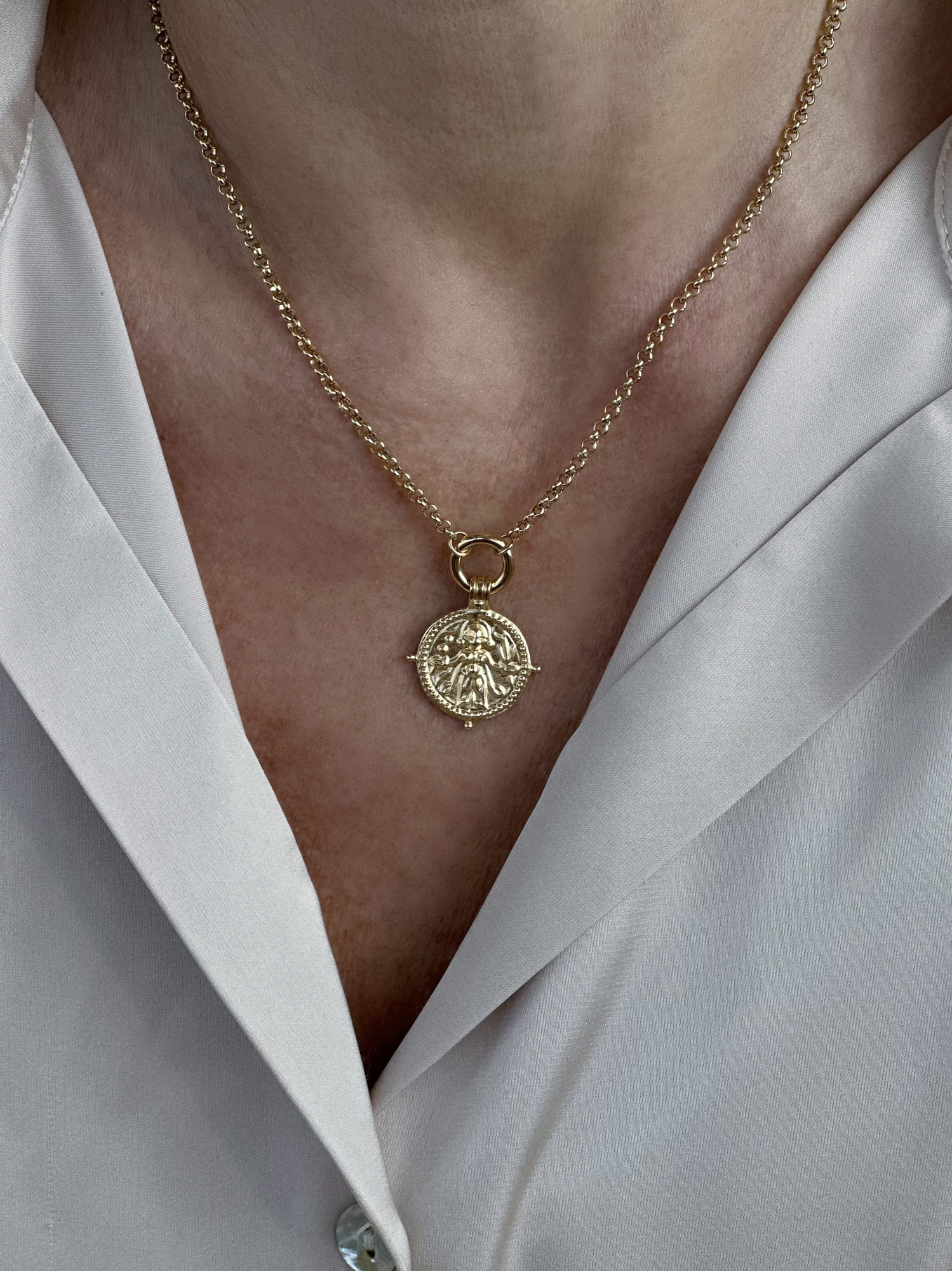 This necklace celebrates Durga, the revered Hindu goddess of strength, protection, and resilience. As the Mother Goddess and a powerful symbol of feminine strength, she embodies inner power and fortitude. This piece is a testament to her formidable qualities and the divine feminine energy she represents – serving as a personal affirmation of your own strength.