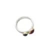 A colourful handmade ring made with iolite and pink tourmaline. The gemstones are rounded cabochons and are set in solid 18ct yellow gold. The colours complement each other very well, and are set on a smooth sterling silver band. Please note we only have one of these rings in stock.