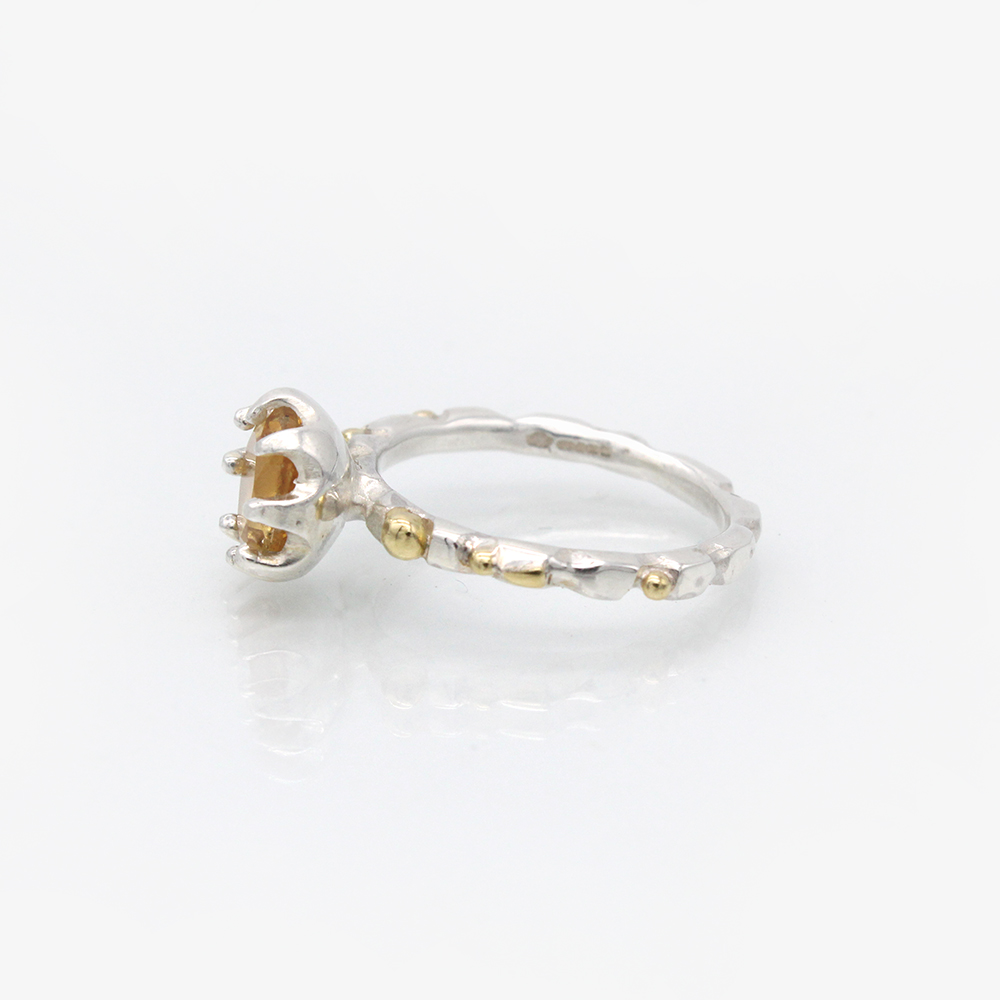Bringing to you this amazing Citrine Ring, the stone is set in 9ct gold, and looks like a crown sat on top of your finger, the silver shank has gold granulation down the sides. This is a unique and beautiful ring created for us by this lovely British Designer.  Treat  yourself or ask a loved one to buy you this fabulous ring to celebrate a special occasion.