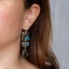 Statement, Stylish Glamourous earrings. Multi stone fabulous earring, handmade in sterling silver with 18k gold plating and embellished with semi-precious gemstones. The stud fitting means the earrings sit on the ear lobe and hang elegantly below, with some natural movement when worn. Featuring faceted kyanite, labradorite, blue chalcedony and rainbow moonstone.  Handmade in sterling silver with 18k gold plating and embellished with natural gemstones. Perfect with a jumper and jeans but party on in these beauties and your sequin top.