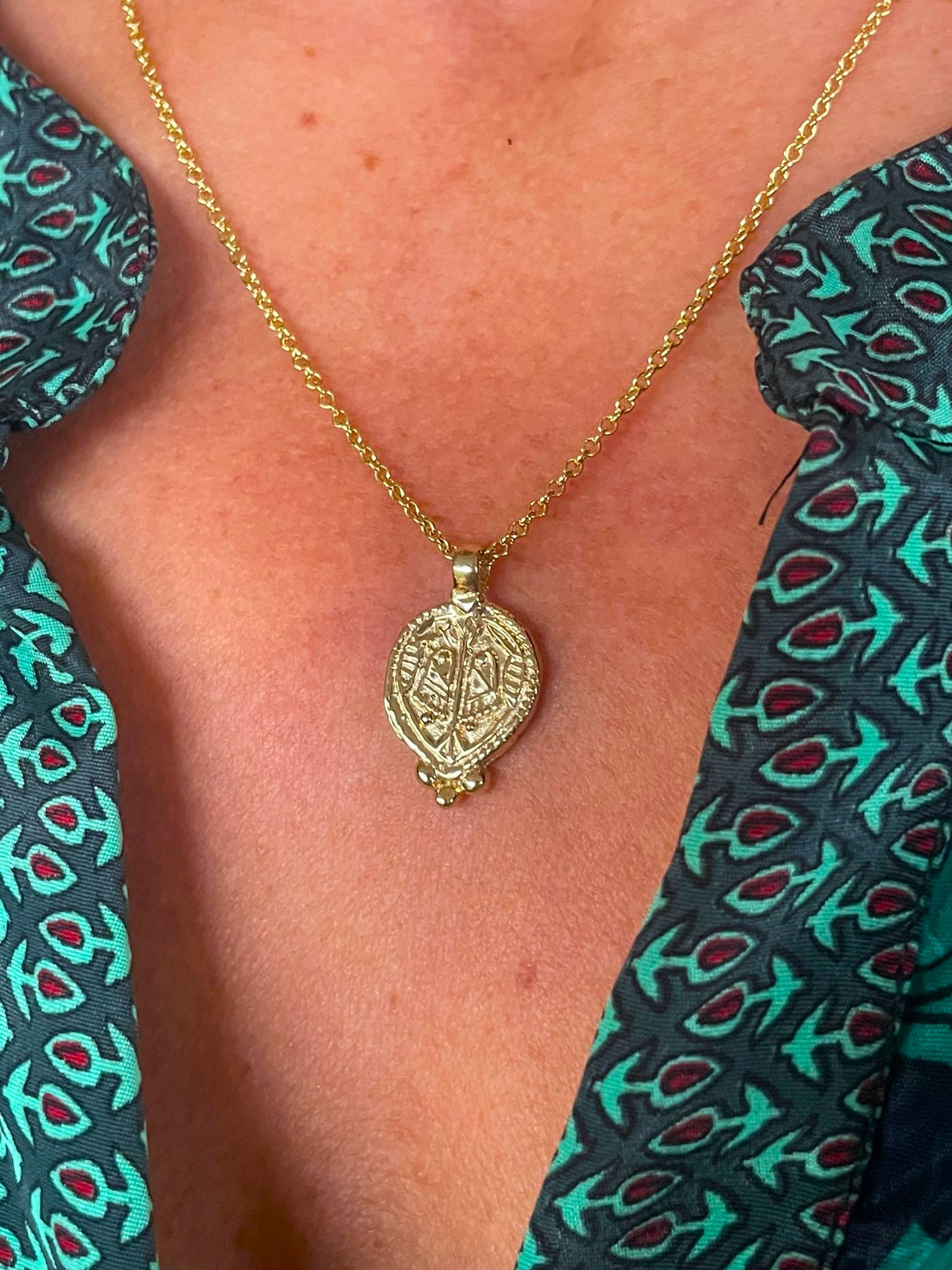 All pieces in this range have been modified and cast from original medallions, trinkets, and keepsakes that have either been discovered or gifted to Liz during her extended period in India over 30 years ago. She has cherished them and kept them safe for all this time, before eventually deciding to share them with the world in the form of our divinity collection.