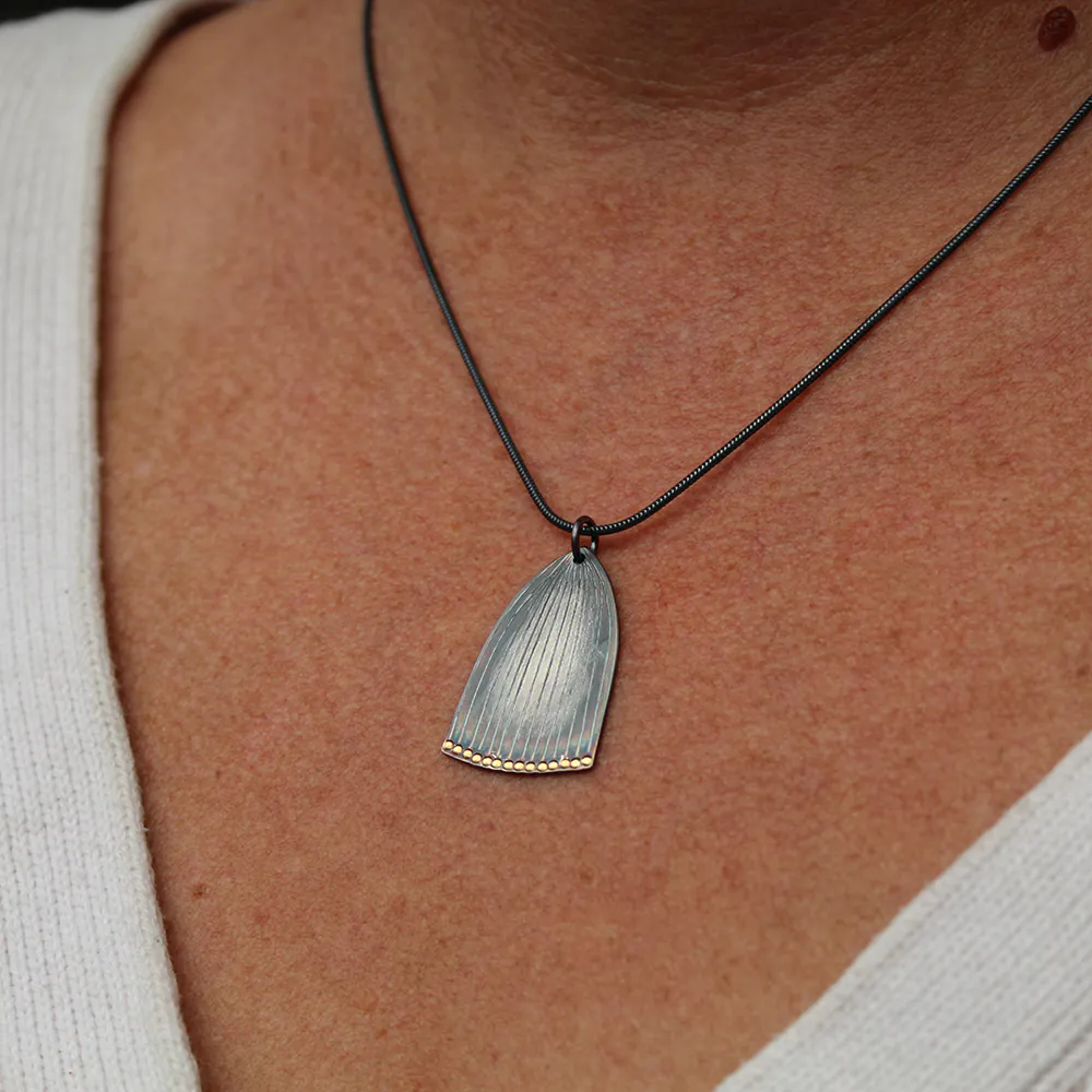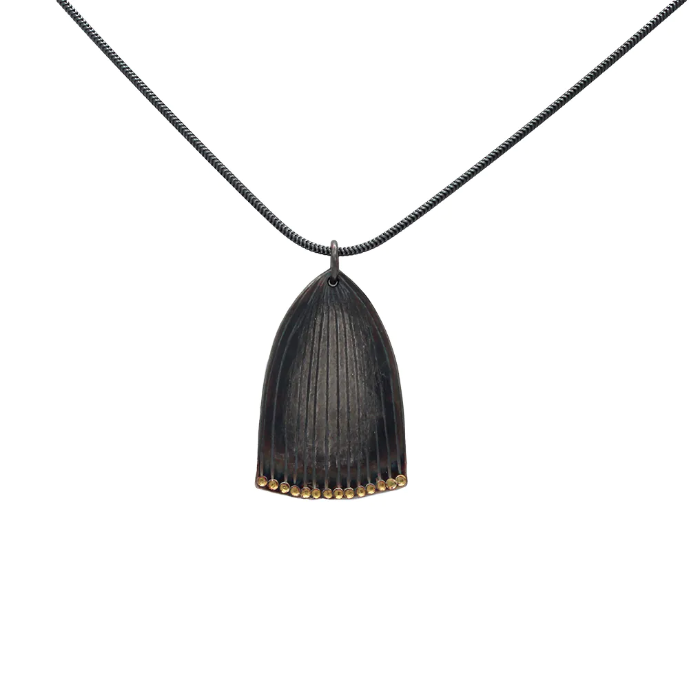 Artisan necklace handcrafted in the UK. This necklace is crafted from heavily oxidised sterling silver with 9k gold detailing.