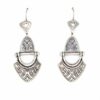 Large long drop patterned earrings with hinged centre, creating movement when worn. Handmade from sterling silver – these earrings feature a long hook fastening, making them comfortable and secure to wear. Why not match this piece with our ‘Sterling Silver Engraved Pendant’?