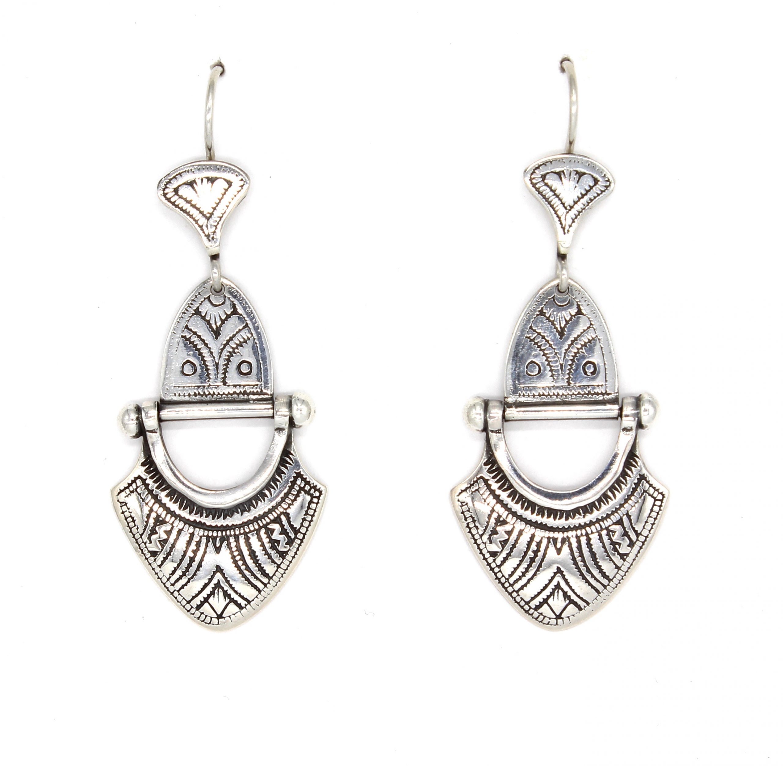 Creative, unique and textured pieces of jewellery that are perfect for achieving a bohemian look! These earrings have been crafted with beautiful oxidised sterling silver to emulate an antique finish. The designer collects various old tribal pieces from around the world and recasts them in sterling silver to form her signature tribal look!