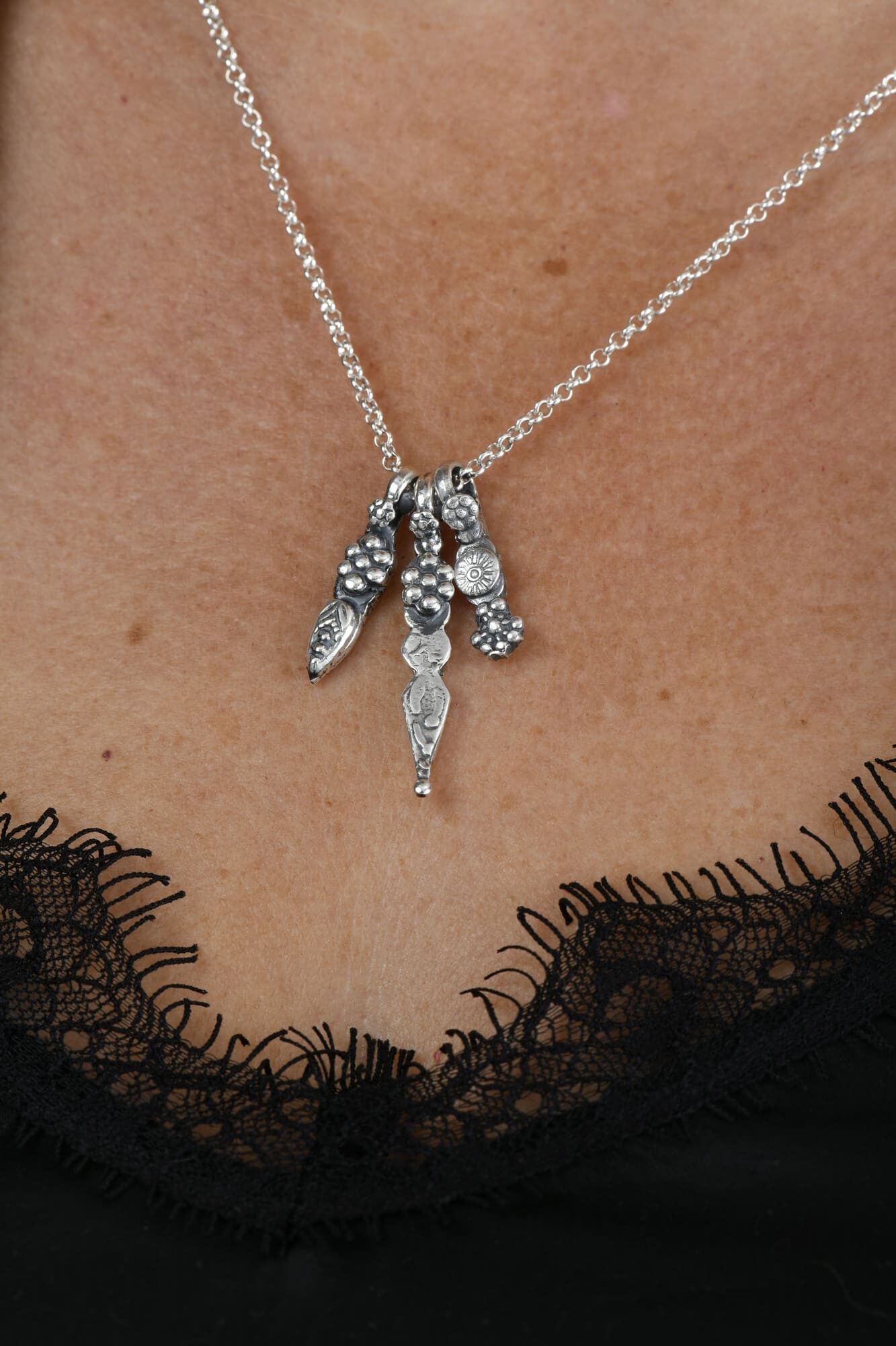 Whether worn as a statement piece or layered for a more eclectic look, the Divinity collection transcends mere accessories; each pendant is a work of art that tells a story of cultural exploration and spiritual resonance. Elevate your style and embrace the divine with these exclusive hand-cast treasures that seamlessly blend tradition with contemporary craftsmanship.