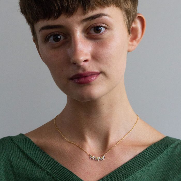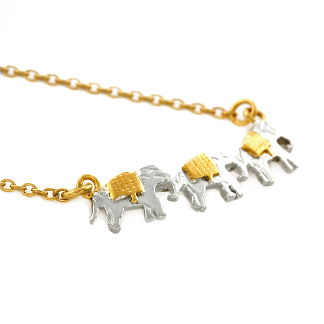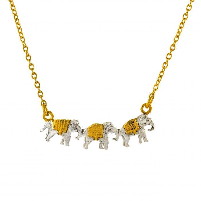 This gorgeous dainty necklace featuring three marching Elephants is handmade in London from solid sterling silver and has 22ct gold plated detailing. A fabulous gift to receive from a loved one or buy for a pressie for a friend. Their are matching earrings why not take a look.