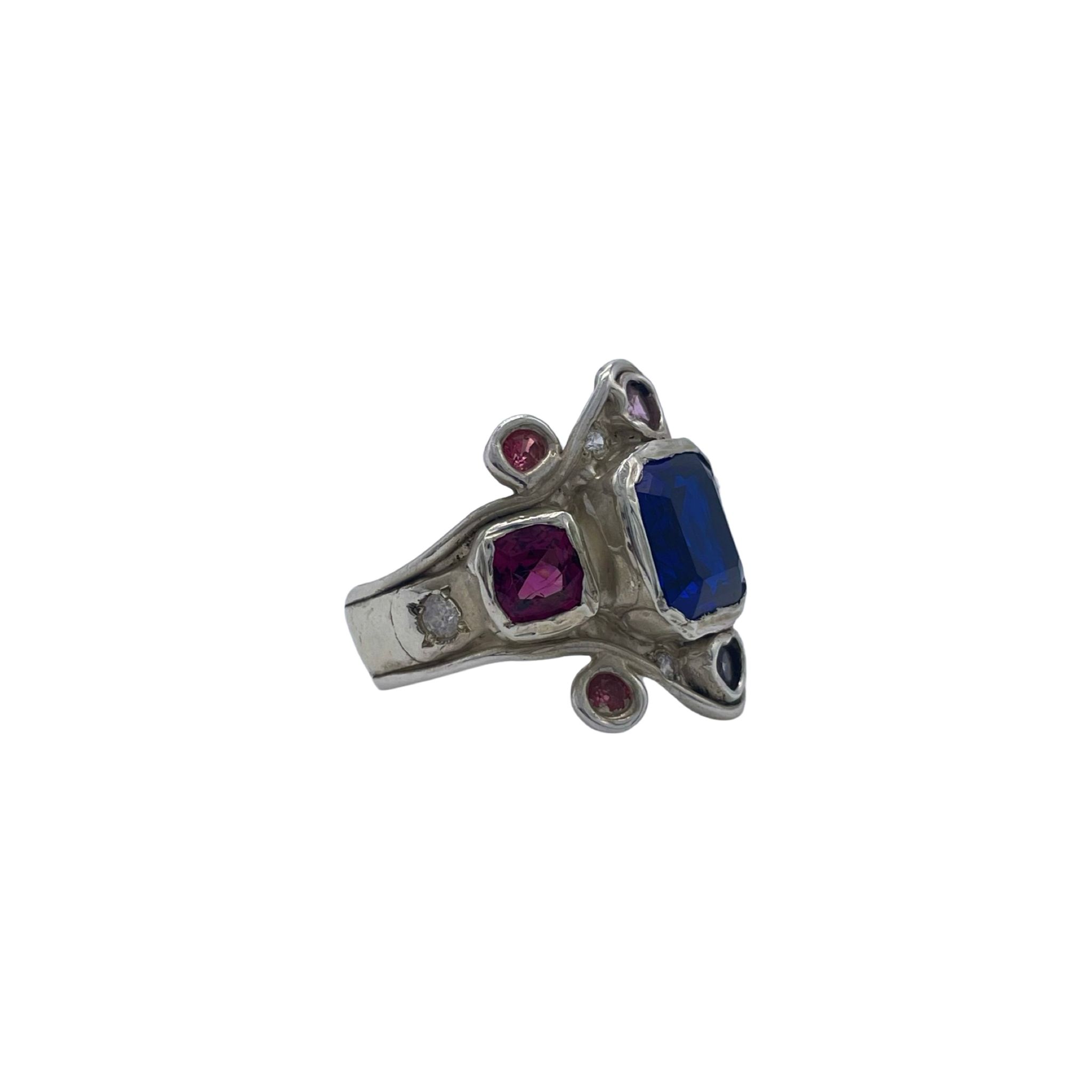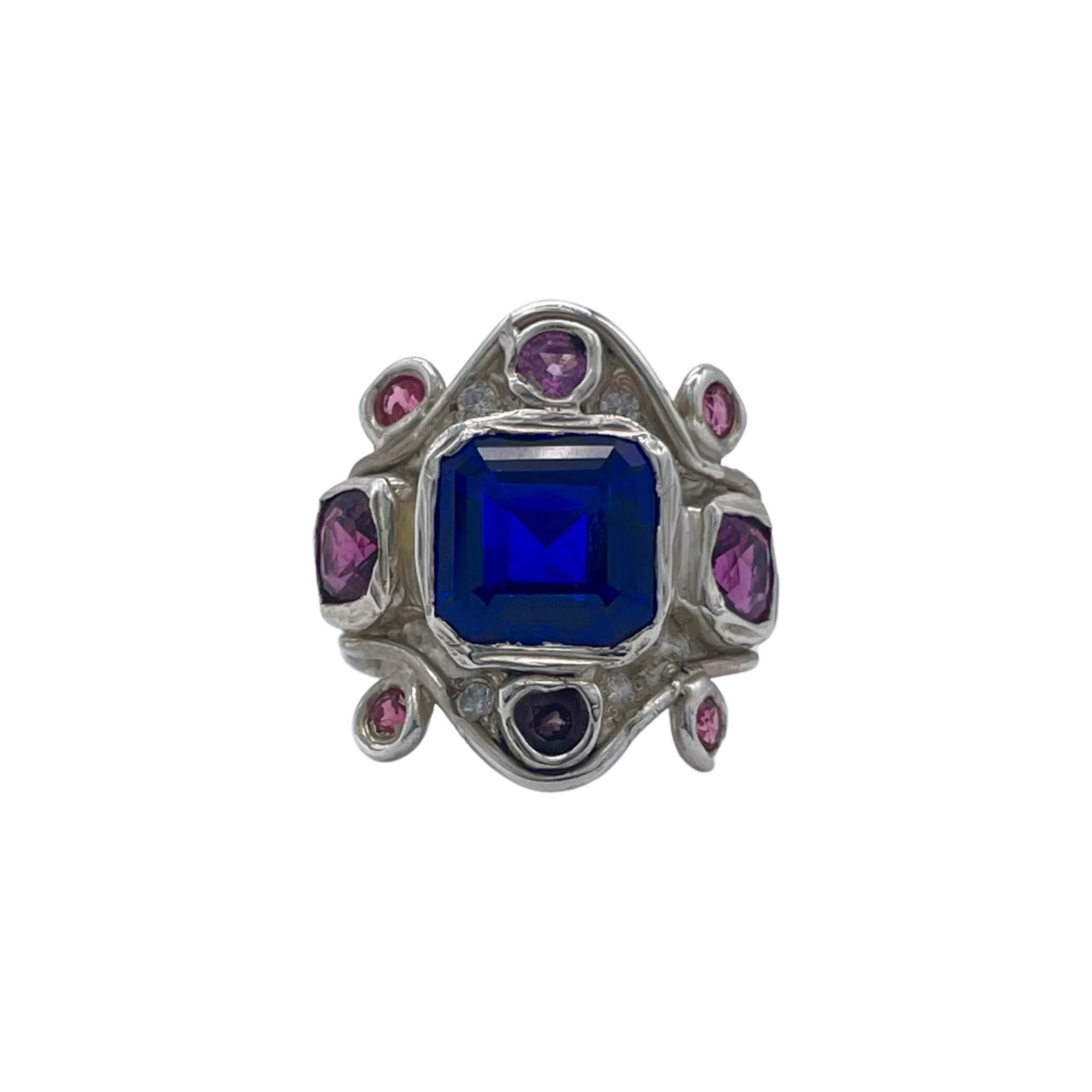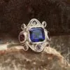 The Sleeping Beauty Ring is another from Millie’s one Off Beauty Collection, the dark blue lab grown (Great for the Earth as sustainable) sapphire in the centre is a gorgeous deep blue, gazing up at it from either side are natural pink tourmalines. All set in silver it is a real show stopper a fabulous creation by the infamous Mille Savage. We are very lucky to have a couple of her one off rings in the Armed and Gorgeous Collection, we love to bring the unique and unusual to our customers and this is an amazing example of one such ring. It will look amazing worn during the day keeping it casual but would love to go out for a drink in the evening and meet all your friends, it likes nothing more than sparkling and showing off so everyone can see its beauty.