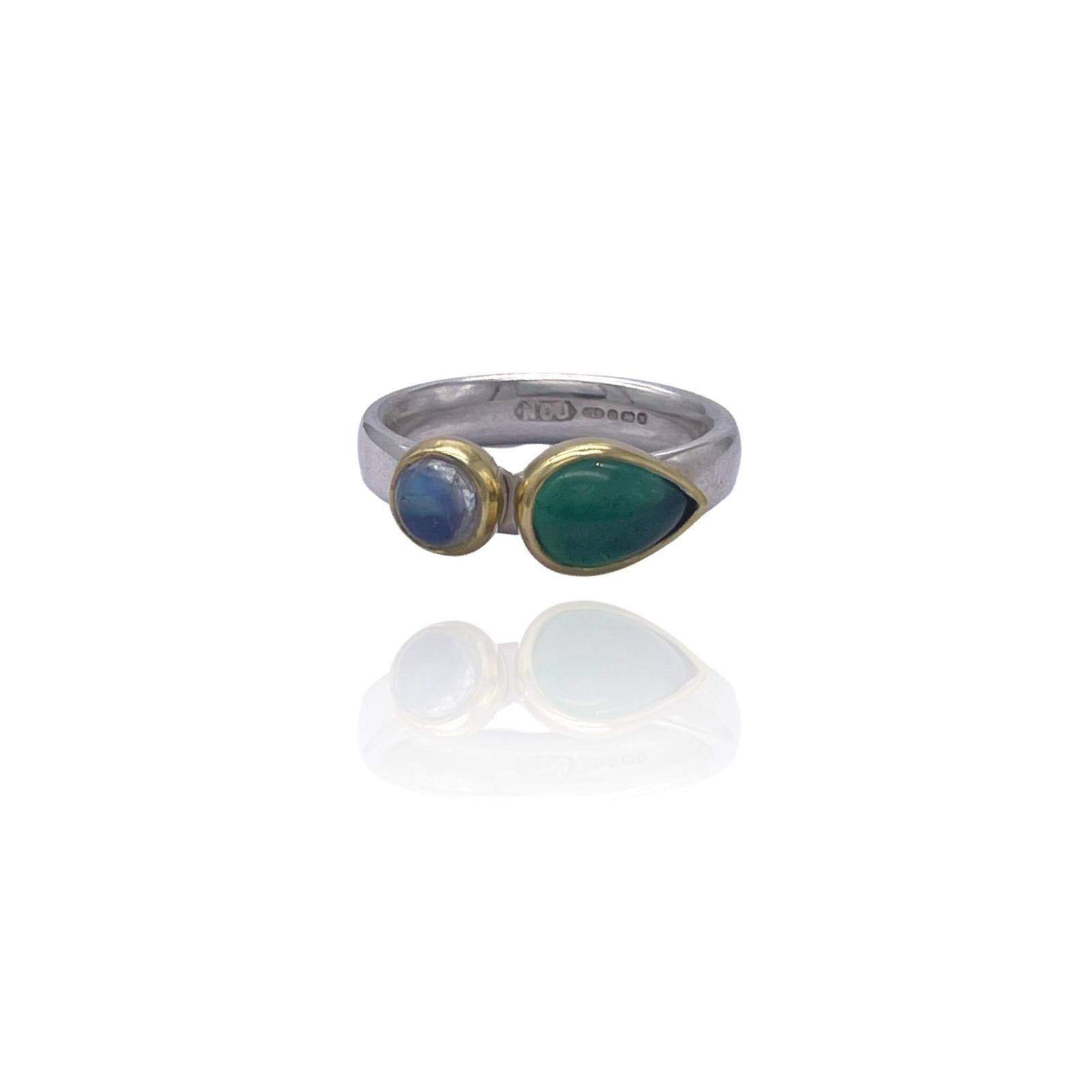 Moonstone And Teardrop Tourmaline Ring 18ct Gold & Silver
