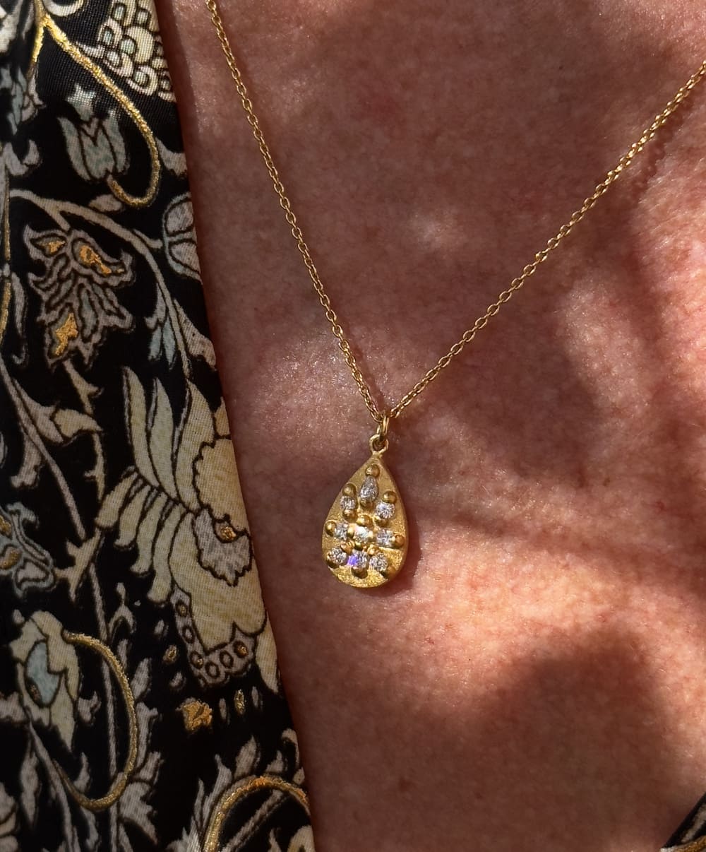Our collection has its roots in the heart of India, where skilled local artisans meticulously handcraft each pendant. We are deeply committed to ensuring fair pay for their exceptional work, helping them support their families and uplift their communities. By partnering directly with these artisans, we not only celebrate their craft but also give back to India, fostering sustainable livelihoods and making a positive impact on the lives of those who create these beautiful pieces.