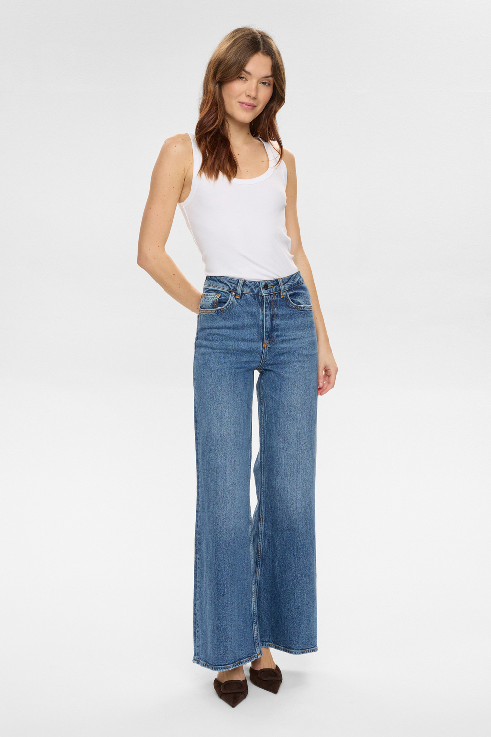 Numph Pisa Mid Blue Denim High-Rise Wide Jeans