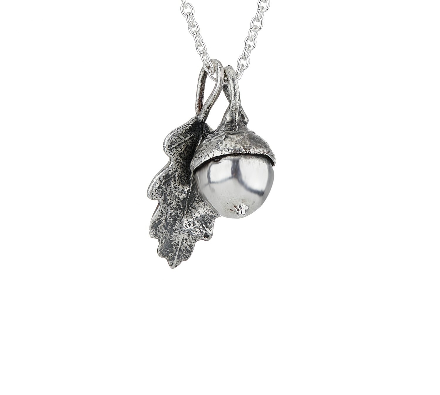 Our smallest acorn pendant and smallest leaf pendant worn on one chain.