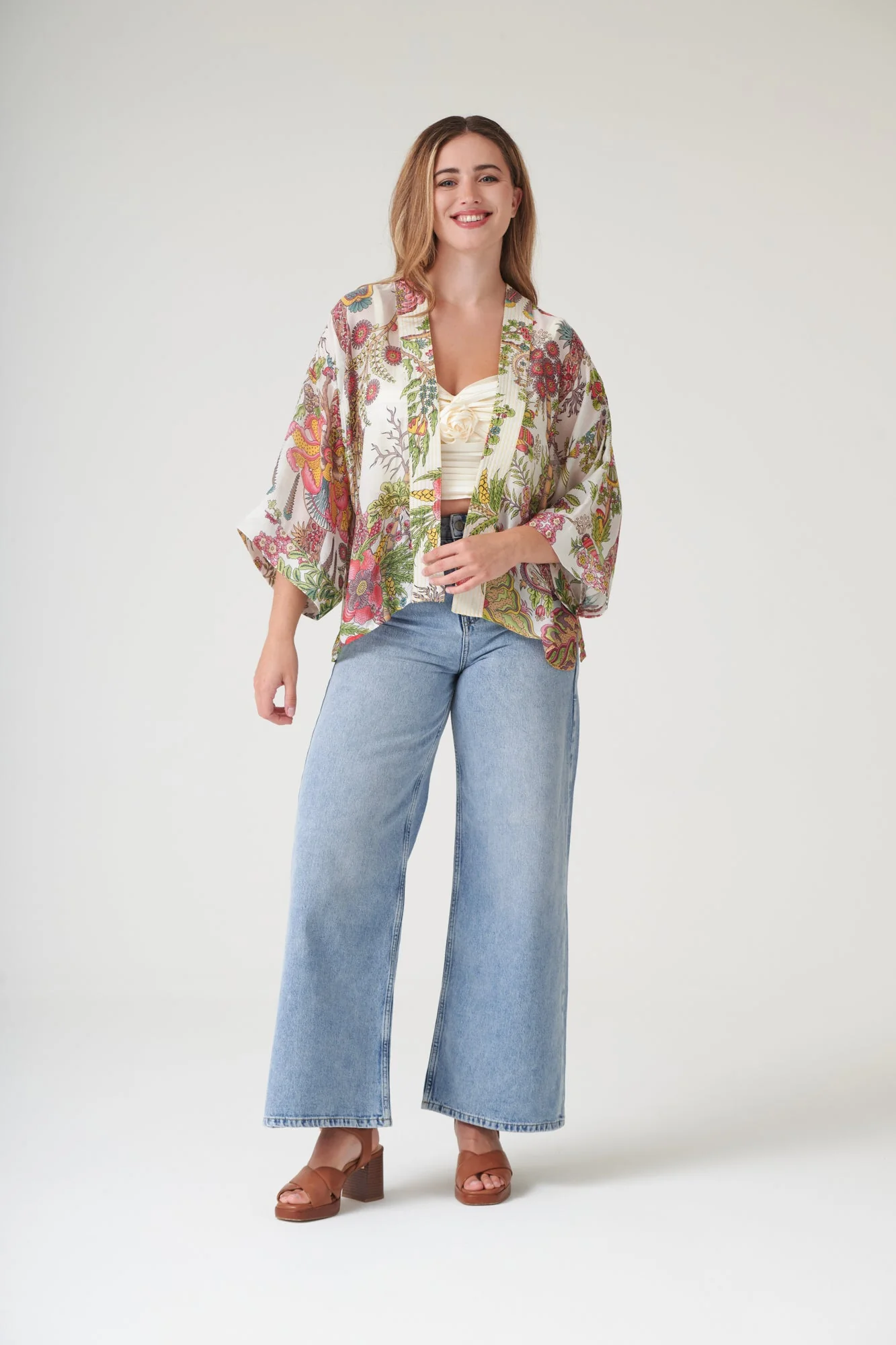 One Hundred Stars Boho Garden Ecru Kimono