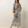 This bestselling kimono jackets have loose ¾ length sleeves, an open front and a lightly embroidered lapel. Pair with a matching camisole and your favourite jeans in summer or layer over a polo neck during the cooler months.