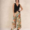 One Hundred Stars China Tree Aqua Crepe Palazzo Pants