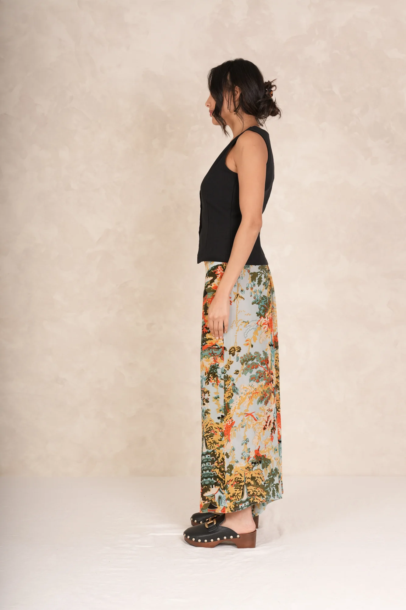A classic One Hundred Stars design, this neutral, cool-tone design features a landscape of pagodas surrounded by a wonderful, vibrant woodland panorama to create an overall texture of colour in gentle aqua and blue.