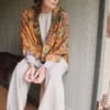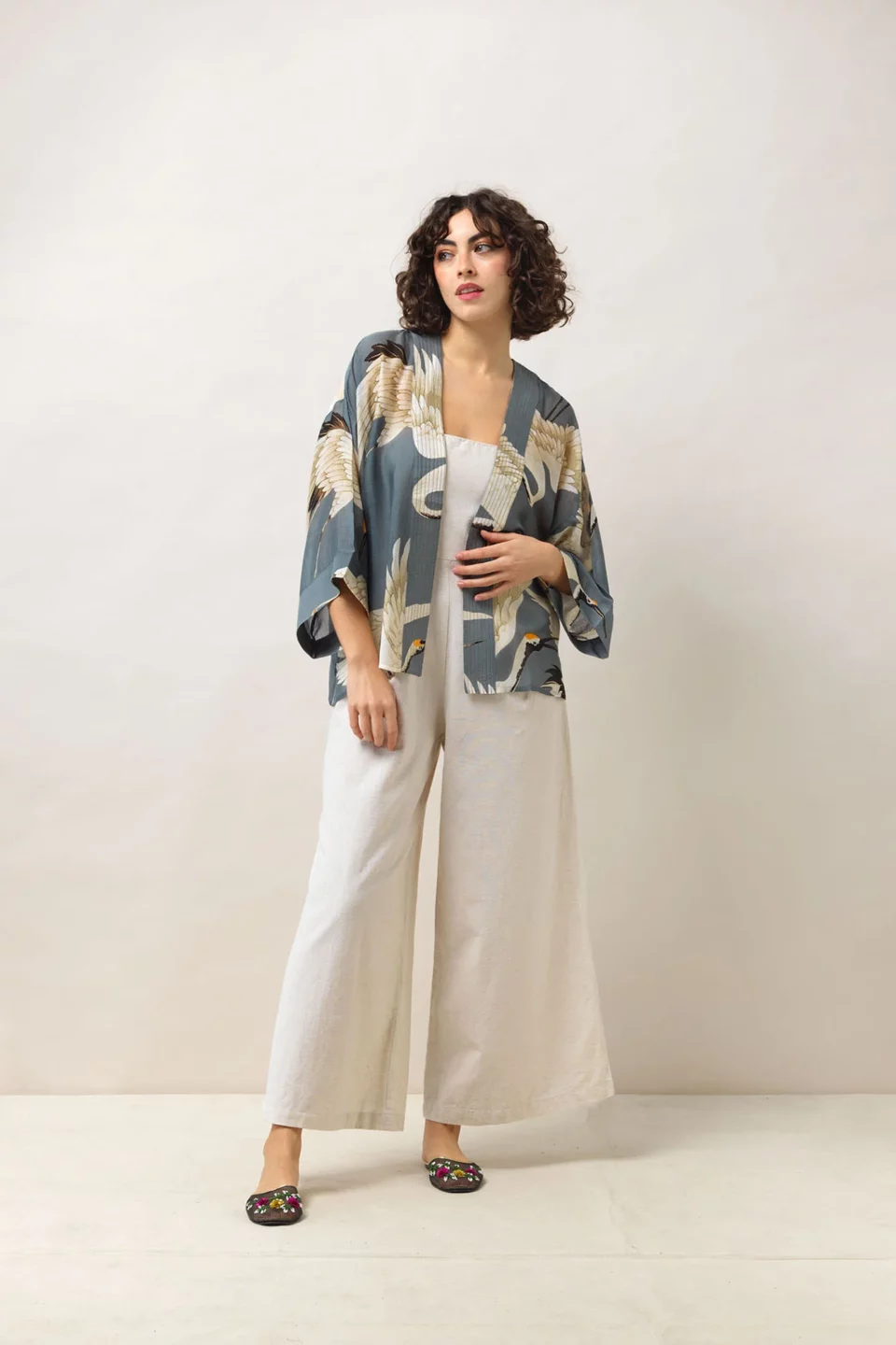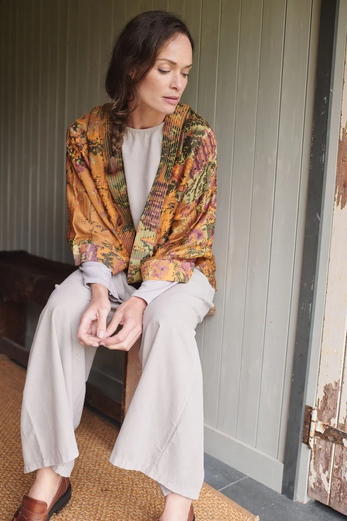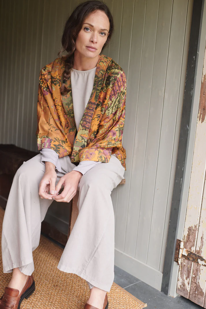 Our bestselling kimono jackets have loose ¾ length sleeves, an open front and a lightly embroidered lapel. Pair with a matching camisole and your favourite jeans in summer or layer over a polo neck during the cooler months.