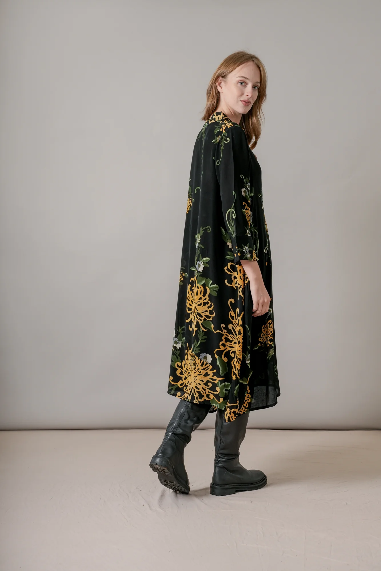 The Chrysanthemum print celebrates the beauty of this elegant flower and its stunning yellow florals! Perfect for any time of year, this joyous floral print is perfect for pairing with a colourful accessory, shoes, or lipstick!