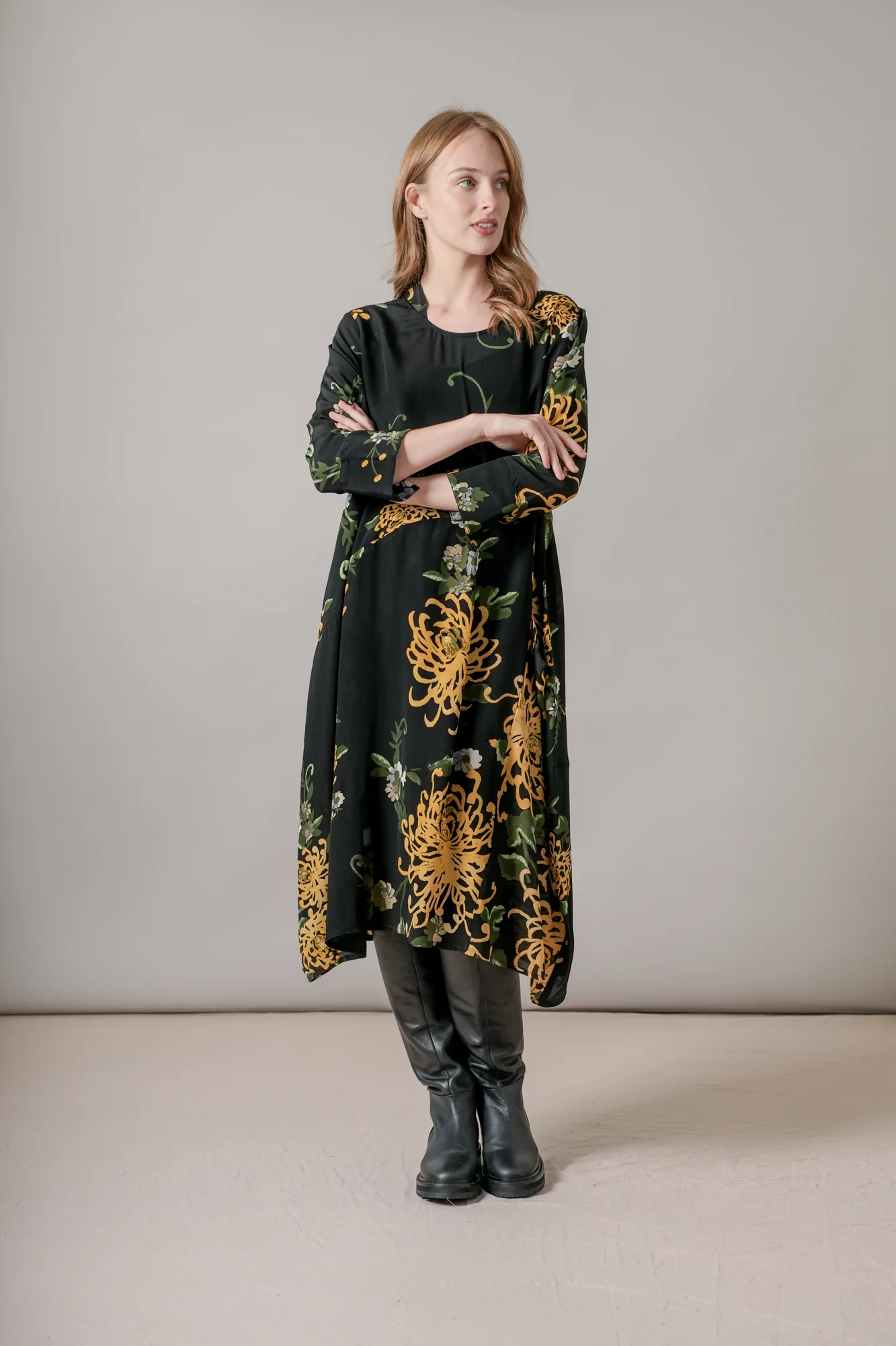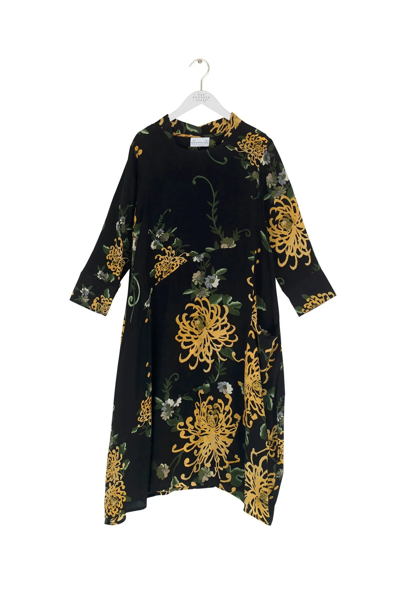 One Hundred Stars Chrysanthemum Black Asymmetric Dress