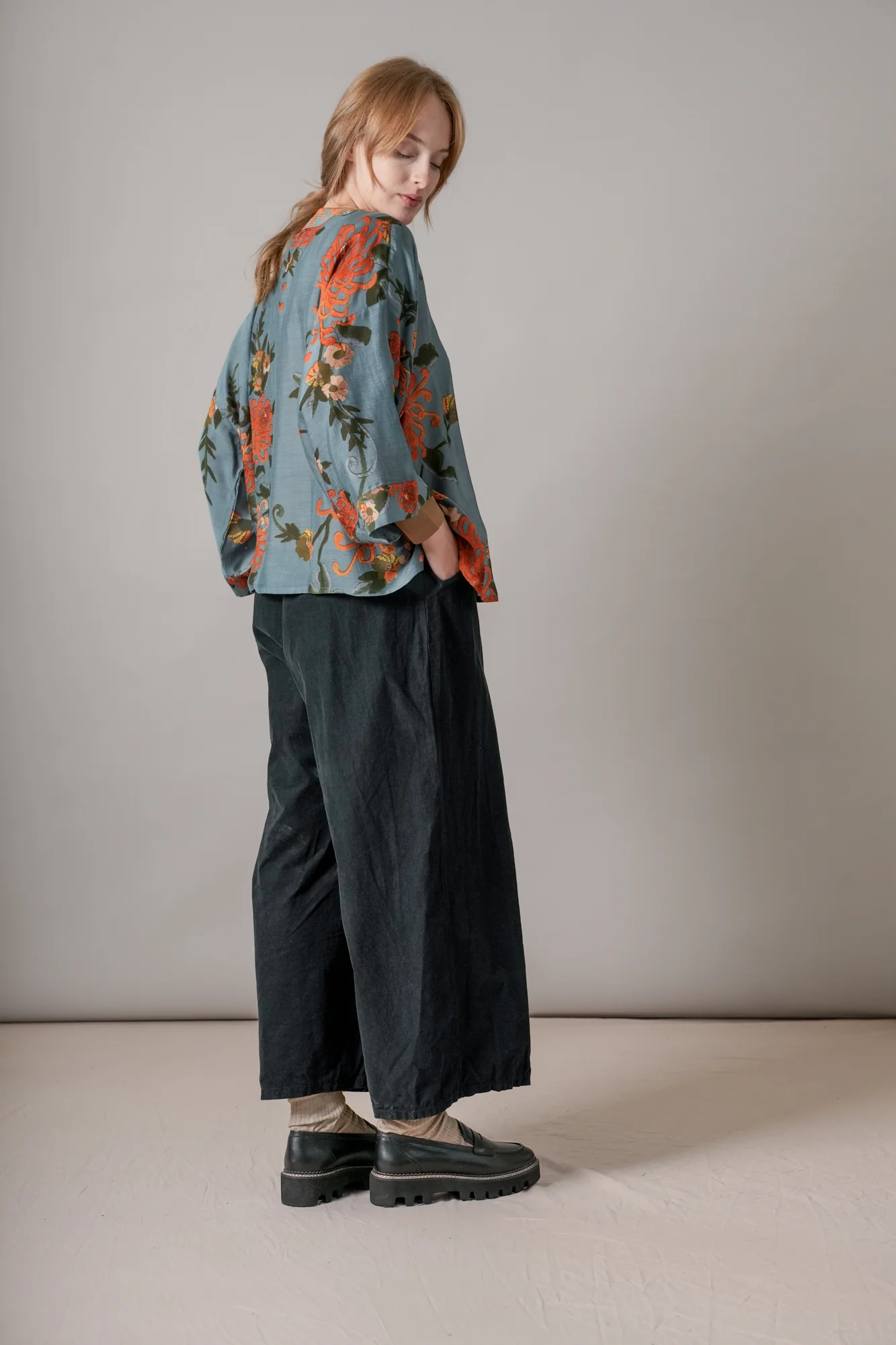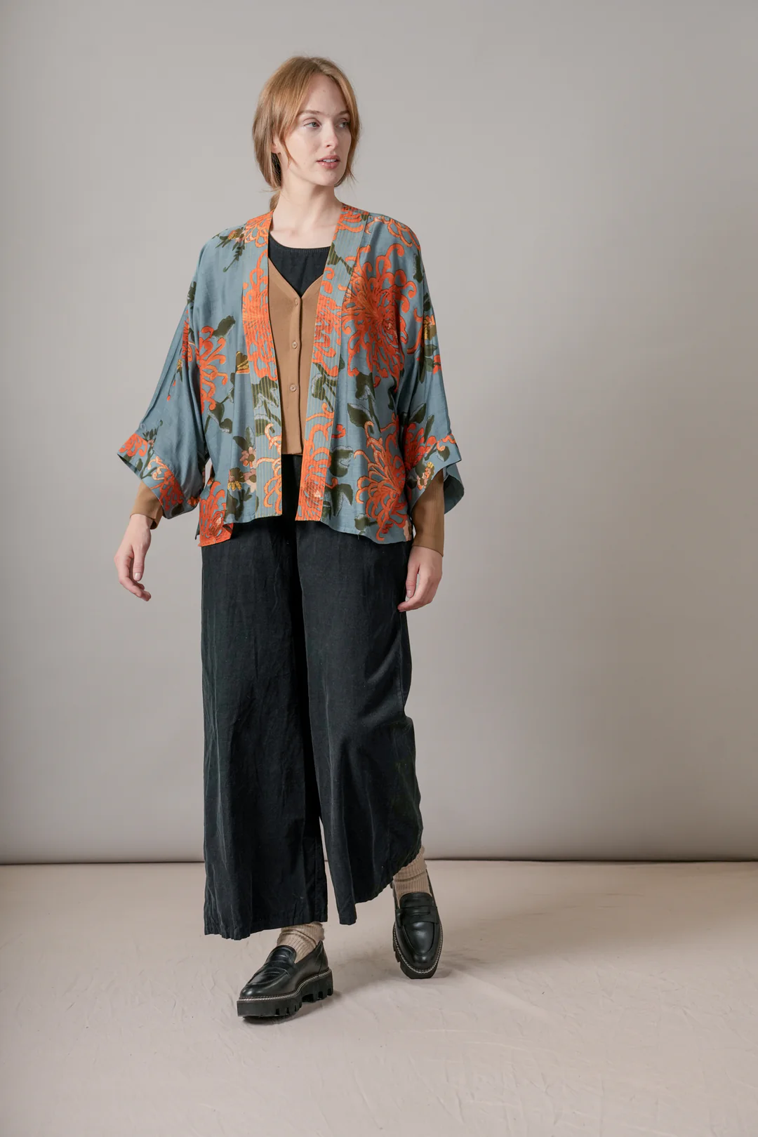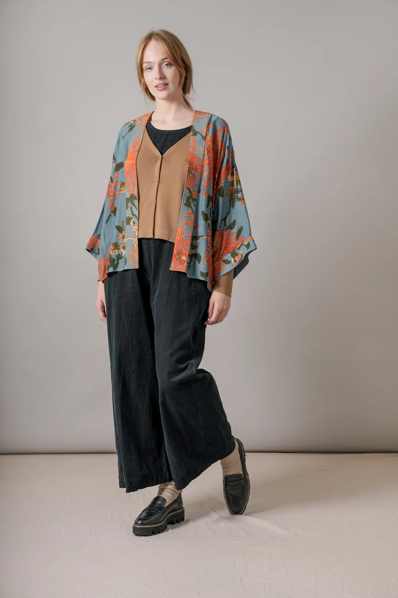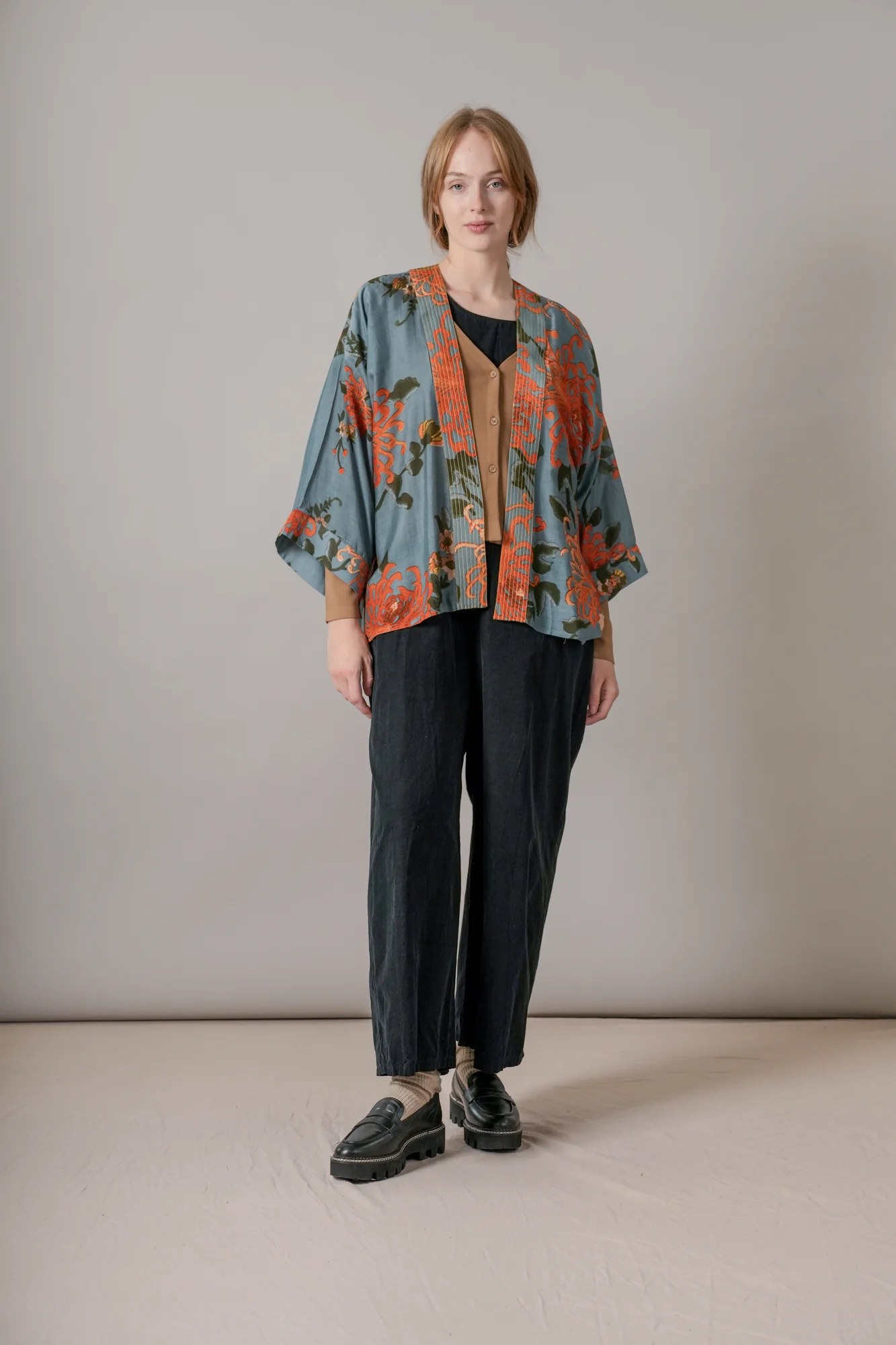 Our bestselling kimono jackets have loose ¾ length sleeves, an open front and a lightly embroidered lapel. Pair with a matching camisole and your favourite jeans in summer or layer over a polo neck during the cooler months.