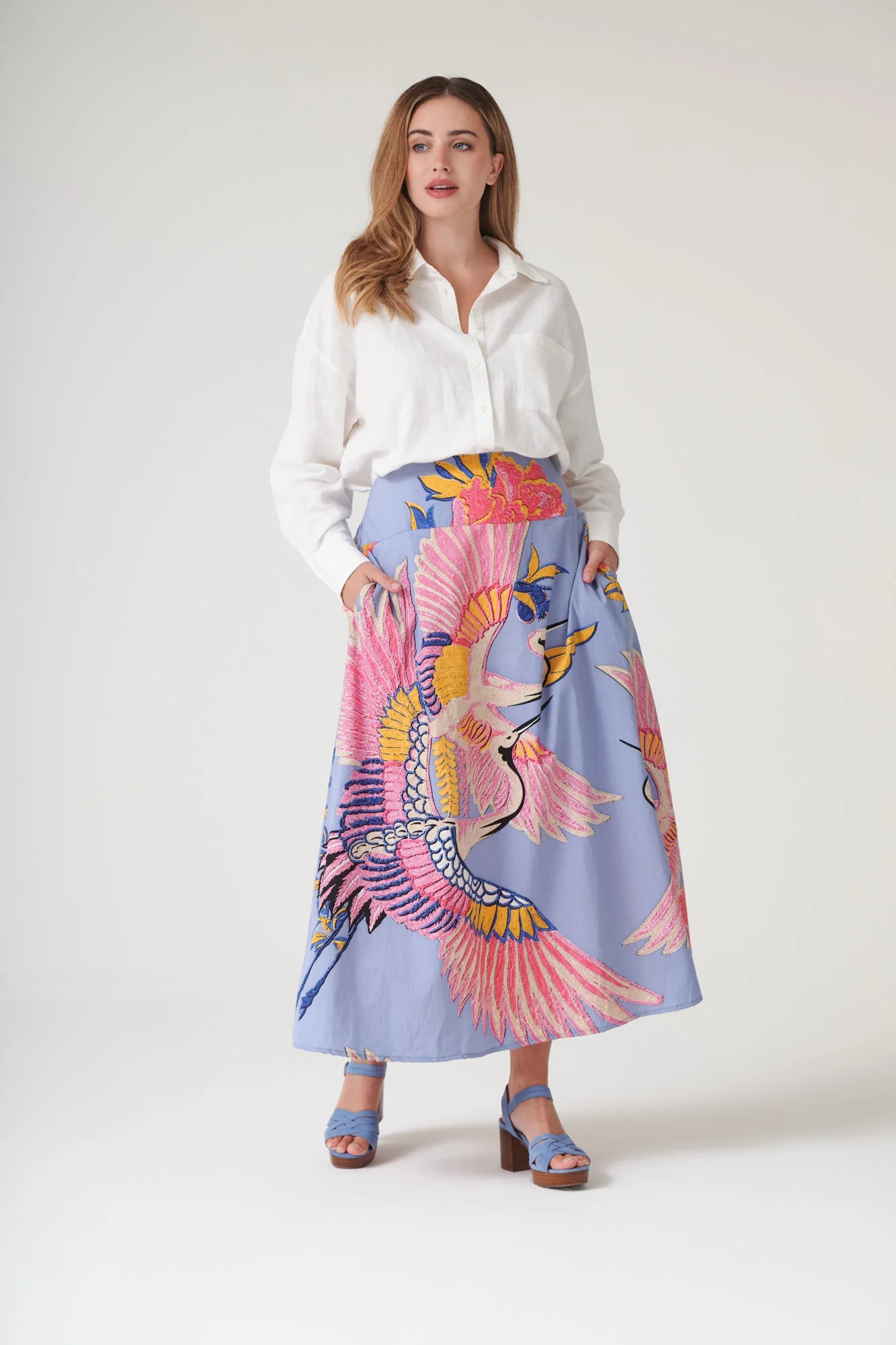 One Hundred Stars Crane Periwinkle Cotton A-Line Maxi Skirt